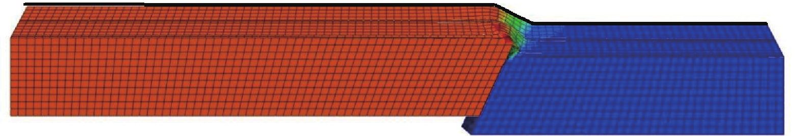 以穿越逆断层的新藏公路高寒地区的某片块石路基段为研究对象,通过物理试验和数值模拟,分析了逆断层断错作用下片块石路基的变形与受力特征。物理试验模型按1∶15的比例缩尺建立,试验结果显示:上盘整体抬升,其破坏程度高于下盘,但下盘受断错影响的范围较大。距离断错迹线越近,路基破坏越严重,反之则越轻,最大变形出现在断层迹线处。从破坏形态来看,片块石路基破坏的形式主要有路面隆起、裂缝、水稳层与片块石层脱空、张拉断裂等。数值模拟结果显示:上盘整体抬升,最大变形同样出现在断层迹线处,且断层迹线附近变形急剧变化,距离迹线越远,相对变形逐渐减小。上盘水稳层在远离迹线处受压,靠近迹线处受拉;下盘水稳层在靠近迹线处受拉,远离迹线处受压,下盘端部受压达到最大值;片块石层与砂砾层土的压力基本表现为受压,且压力在迹线处减小。数值模拟中的片块石路基变形和受力特征与试验结果较为吻合,研究结果表明,片块石路基具有较好的抗断效果,这些结论可为跨活动断层片块石路基设计提供科学依据。