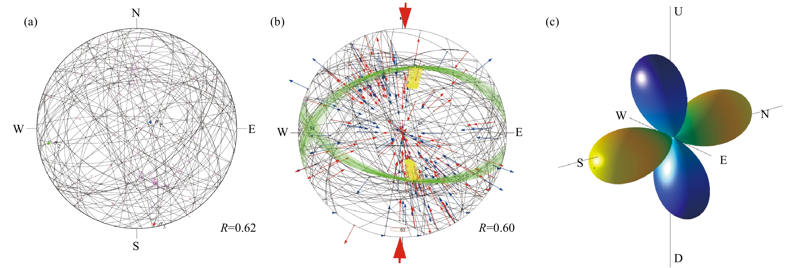 本文为研究2024年新疆乌什MS7.1地震的发震构造及应力场特征,收集了主震发生后1月23日至2月1日M≥3.5地震事件的P波初动极性符号,采用初至波极性约束的震源机制反演方法,得到68组震源破裂参数,基于应变花分类体系,建立震源机制类型与区域应力场的映射关系,发现尽管震源机制类型多样,但逆冲类事件占比超过半数,表明此次地震序列是以逆冲破裂为主。随后,系统整合本次地震与历史震源机制解,并通过网格搜索法和遗传算法进行应力张量反演,结果显示研究区呈近SN向挤压、NEE向近垂直拉张。进一步模拟应力体系与震源机制之间的关系表明此次地震沿最优节面破裂,并为后续发震机制与地球动力学研究提供了参考。
