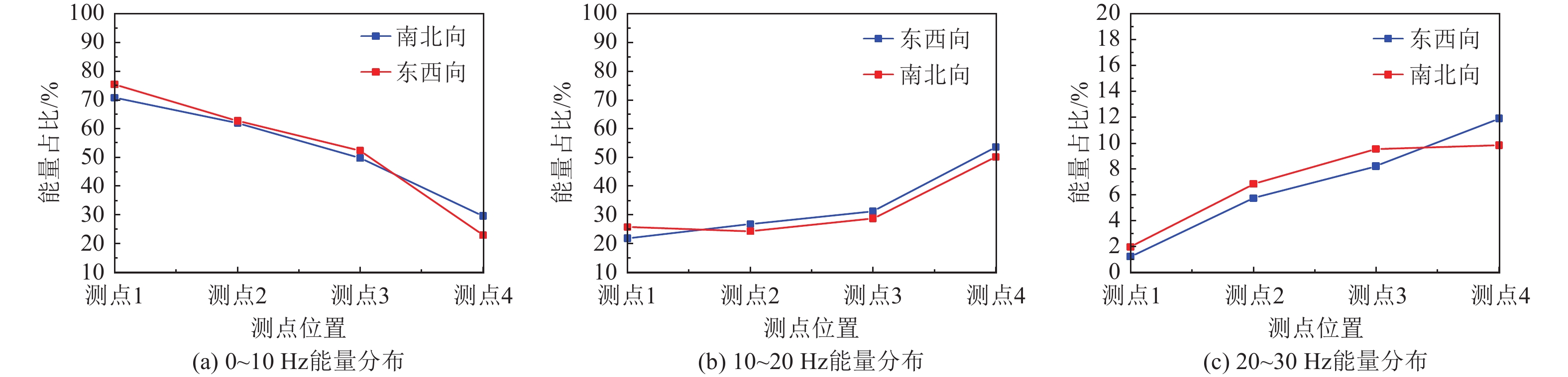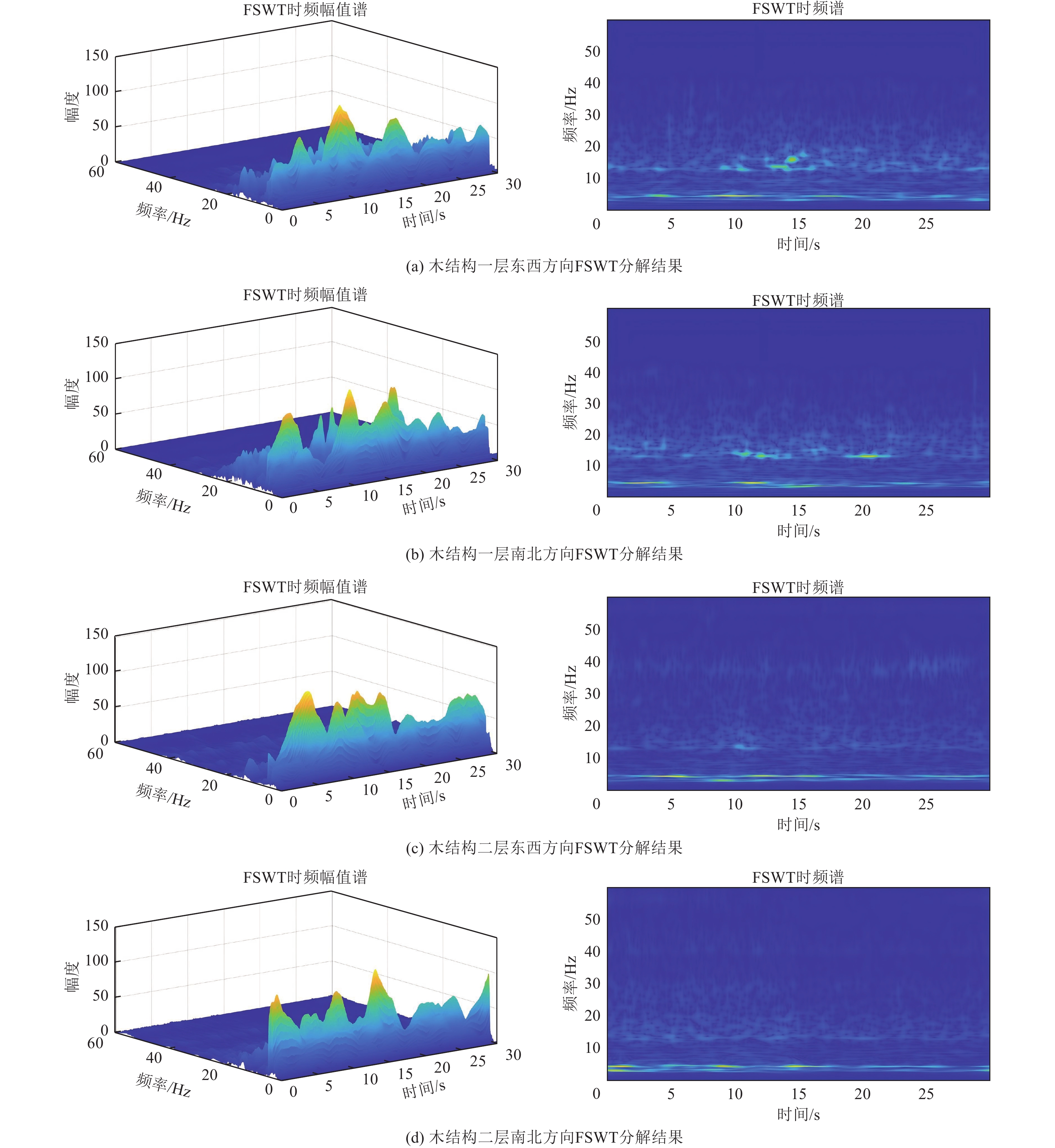 交通振动对古建筑的结构健康和长期稳定性构成了潜在威胁,尤其在现代城市环境中,交通荷载频繁且多样化,因此引入了一种结合时域分析的频率切片小波变换(Frequency Slice Wavelet Transform, FSWT)分析法,系统的研究交通振动对古建筑的影响。首先,对清远楼进行了现场振动测试,采用时域分析对交通振动信号进行初步处理,获取振动响应的基本特性;通过FSWT分析法对信号进行详细的时频分析,揭示振动信号的频率特性及其随时间变化的规律,分解出各个频率成分在不同时间段的能量分布;最后,建立有限元模型,进一步验证其方法的可靠性。研究结果显示:以时频能量为参考值更能反映出振动信号的实际变化规律及结构最易受影响的位置,即交通振动在古建筑中的传播具有明显的层次特征,0~10 Hz频段的振动能量随着高度增加而逐渐增大,在10~20 Hz频段,振动能量主要集中在台基结构,且随着频率的升高,能量逐渐集中于台基底部。此外,分析结果还揭示了木结构与台基在动态响应中的差异,为交通振动对古建筑的影响分析及易损部位的识别提供了科学依据。