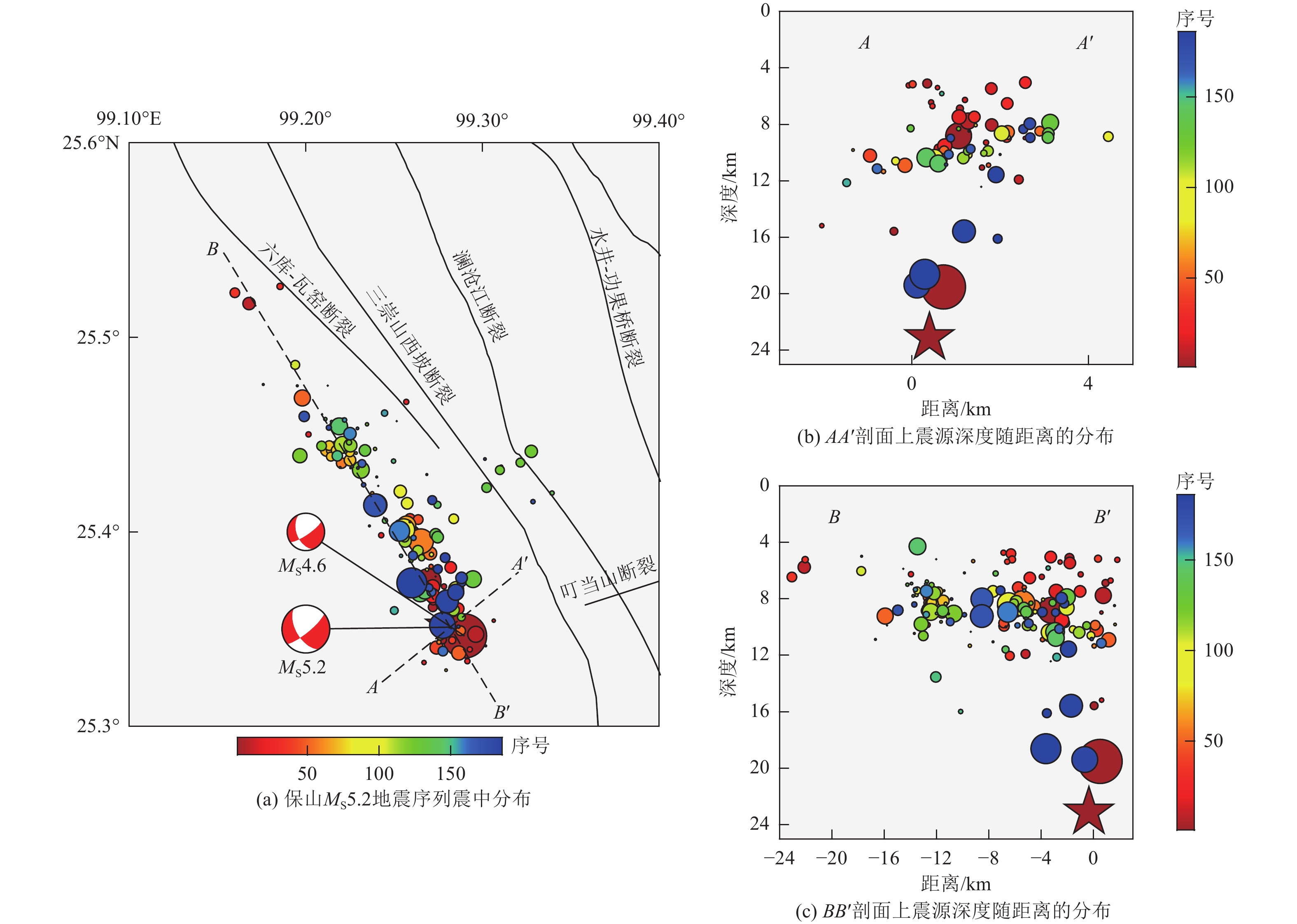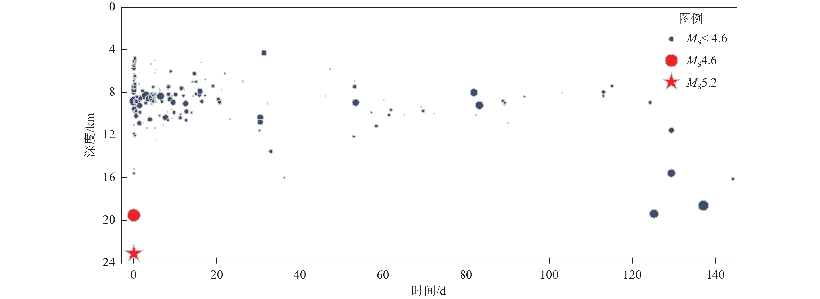本文基于云南省区域数字化地震监测台网地震观测报告和云南台网区域地震波形数据,结合双差定位方法、CAP方法、川滇地区高分辨率速度模型和流体扩散模型,深入分析了2023年云南保山MS5.2地震的发震断层和成因。双差重定位结果显示,云南保山MS5.2地震沿NW向呈条带状分布,震源深度主要集中在4~12 km。震源机制解反演结果表明,云南保山 MS5.2主震2个发震断层面参数为:节面Ⅰ,走向51°,倾角78°,滑动角−34°;节面Ⅱ,走向149°,倾角56.8°,滑动角−165.6°。根据流体扩散模型拟合得到水力扩散系数