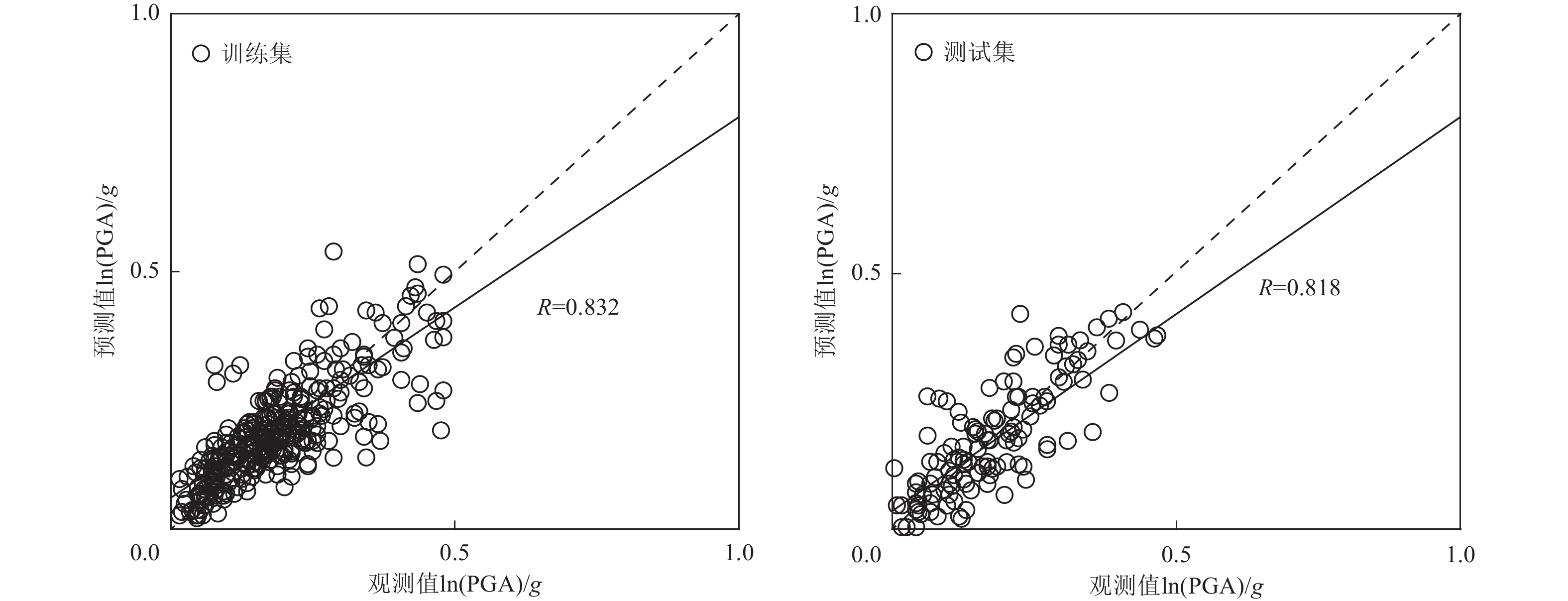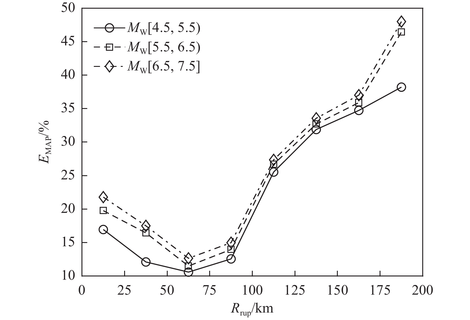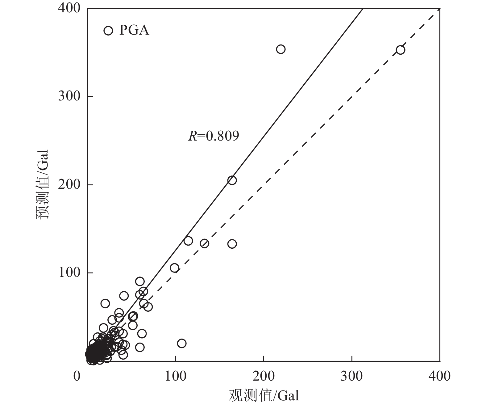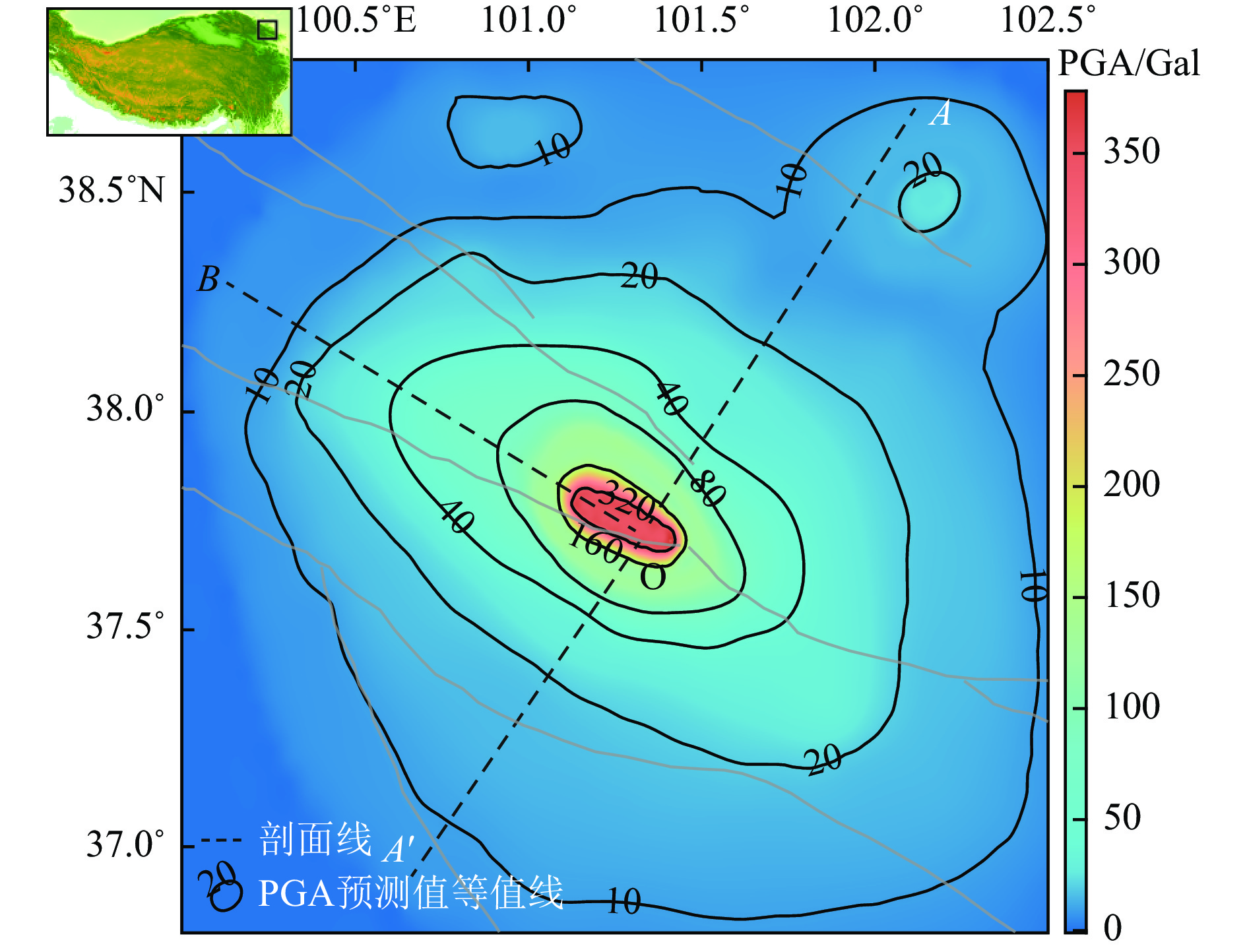 为解决竖向地震动预测不确定性较大的问题,利用NGA-West强地震动数据库,基于自适应神经模糊推理方法(ANFIS)建立竖向地震动强度预测模型,计算2022年1月8日青海门源MW6.7地震的竖向地震动峰值加速度分布。在利用国家地震烈度速报与预警工程观测数据开展信度检验的基础上,探讨近场强地震动的方向效应、场地放大效应及其成因机理。研究结果表明:(1)基于ANFIS方法的竖向地震动强度预测模型在门源MW6.7地震竖向PGA预测过程中取得了较好的预测结果,其预测值与观测值相关系数R约为0.809,均方根误差ERMS约为0.046,说明本文预测模型具有较好的可靠性,同时检验了其在我国中强破坏性地震预测中的适用性。(2)门源MW6.7地震的竖向PGA预测值等值线整体上呈椭圆状,其长轴与发震断层走向具有较好的一致性,震中附近竖向PGA极大值约为376.3 Gal。竖向PGA在随断层距增大而不断衰减的同时,呈现出较为显著的方向性效应以及一定程度上的近场大震饱和效应。(3)竖向地震动峰值加速度的场地放大效应相对弱于水平向地震动,随着\begin{document}$ {{V}}_{{{\mathrm{S}}30}} $\end{document} ![]()