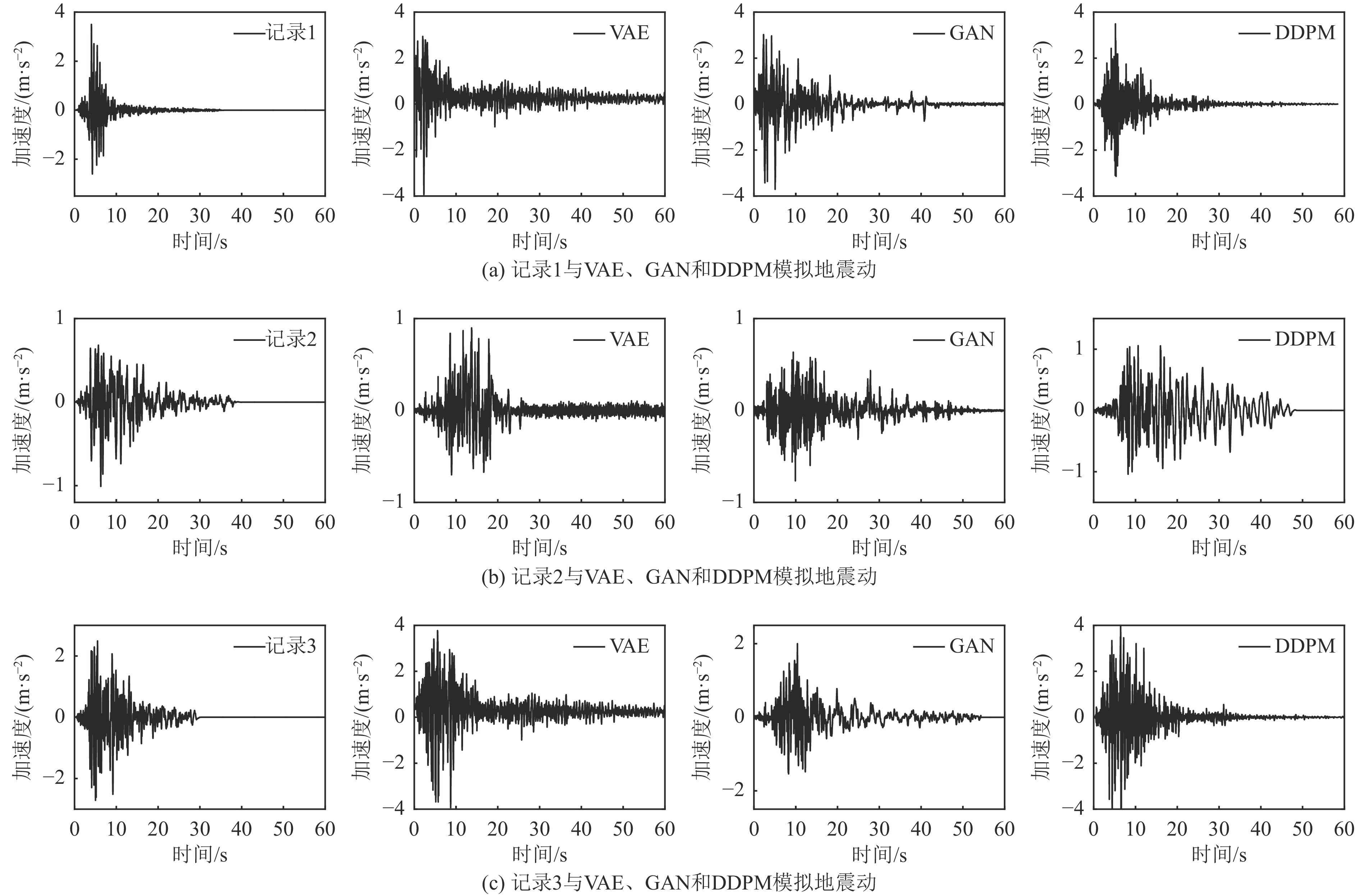 基于简单线性关系的分析方法在表征地震动影响因素时,往往导致预测结果与实测数据存在显著偏差。为克服这一局限性,本文基于生成式神经网络无需依赖先验地震学知识即可自动提取特征并生成完整地震动时程的优势,系统评估了3种典型生成式神经网络模型(变分自编码器VAE、生成对抗网络GAN和去噪扩散概率模型DDPM)在地震动模拟中的性能表现。研究采用PEER数据库中的1 451条水平向地震动记录(源自23次独立地震事件)作为训练数据集,对3种模型进行统一训练和对比分析。模拟结果时域和频域的综合评估结果表明,3种模型中DDPM展现出最优的模拟性能,GAN次之,而VAE表现相对欠佳。值得注意的是,GAN模拟结果呈现出显著的长周期成分增强特征,而VAE则表现出明显的持时延长现象。通过与4种经典地震动预测方程的对比研究发现,DDPM模拟结果与GMPEs预测值具有较好的一致性,但存在轻微的系统性低估趋势。