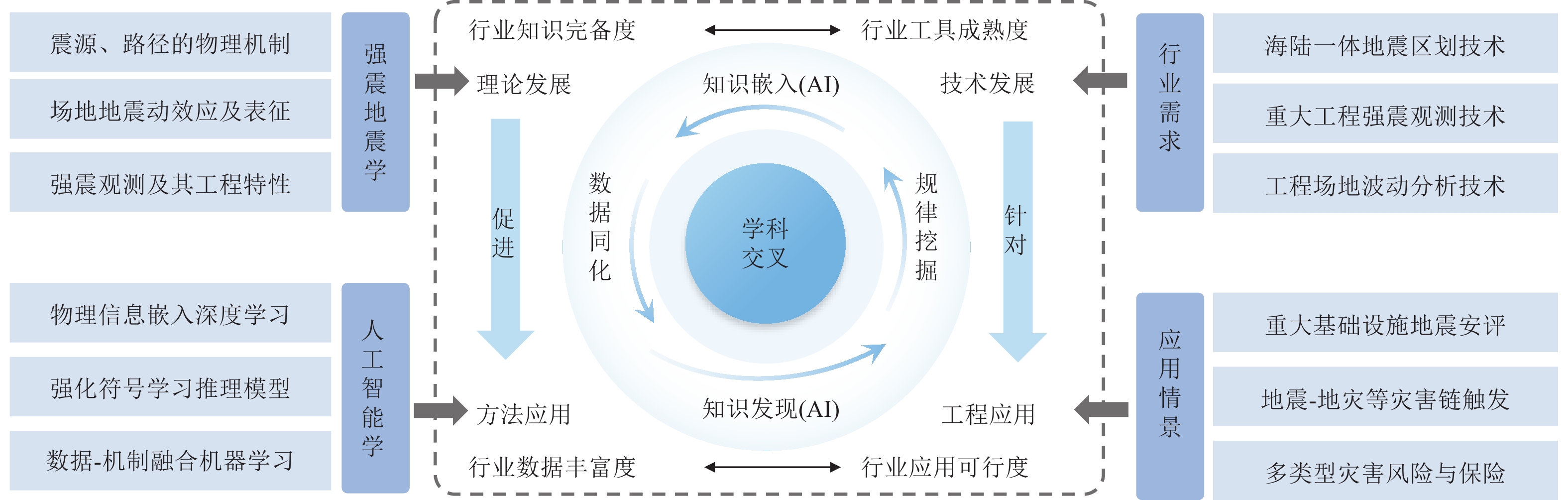数十年间,地震学家及地震工程学家通力合作,为包括地震构造特征、地震活动性、震源特性、地震动预测模型及场地效应等多个关键问题的解决提供了支撑,形成了地球科学与工程科学交叉融合的具有独特性的工程地震学科,并取得了系统的应用性研究成果。作为工程地震学重要分支的强震动地震学得到了迅猛发展,为地震区划和工程抗震研究奠定了坚实基础,为城乡建设和核电、交通、能源等多类型行业的发展提供了地震安全保障。近年来,随着算力、算法及算料(数据)等人工智能关键要素的大力发展,进一步实现强震动地震学与信息学科交叉成为可能,也迅速成为本领域的热点问题。本文首先分析了强震动地震学研究进展与关键问题,探讨了其与人工智能交叉的框架。而后从知识嵌入、数据-知识融合及知识发现3个层面,综述了行业研究成果,重点介绍:(1)地震波动相关的控制方程与边界、初始条件物理嵌入理论与求解方法;(2)数据与物理机制联合驱动的人工智能地震动模型构建理论与方法;(3)强震动人工智能生成模型等。最后,讨论了目前强震动地震学与人工智能研究亟须解决的关键问题,并对未来的发展方向进行了展望。