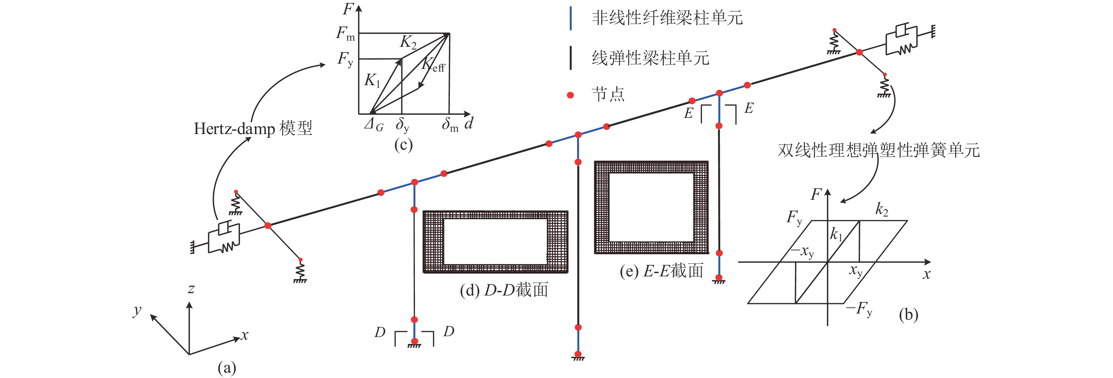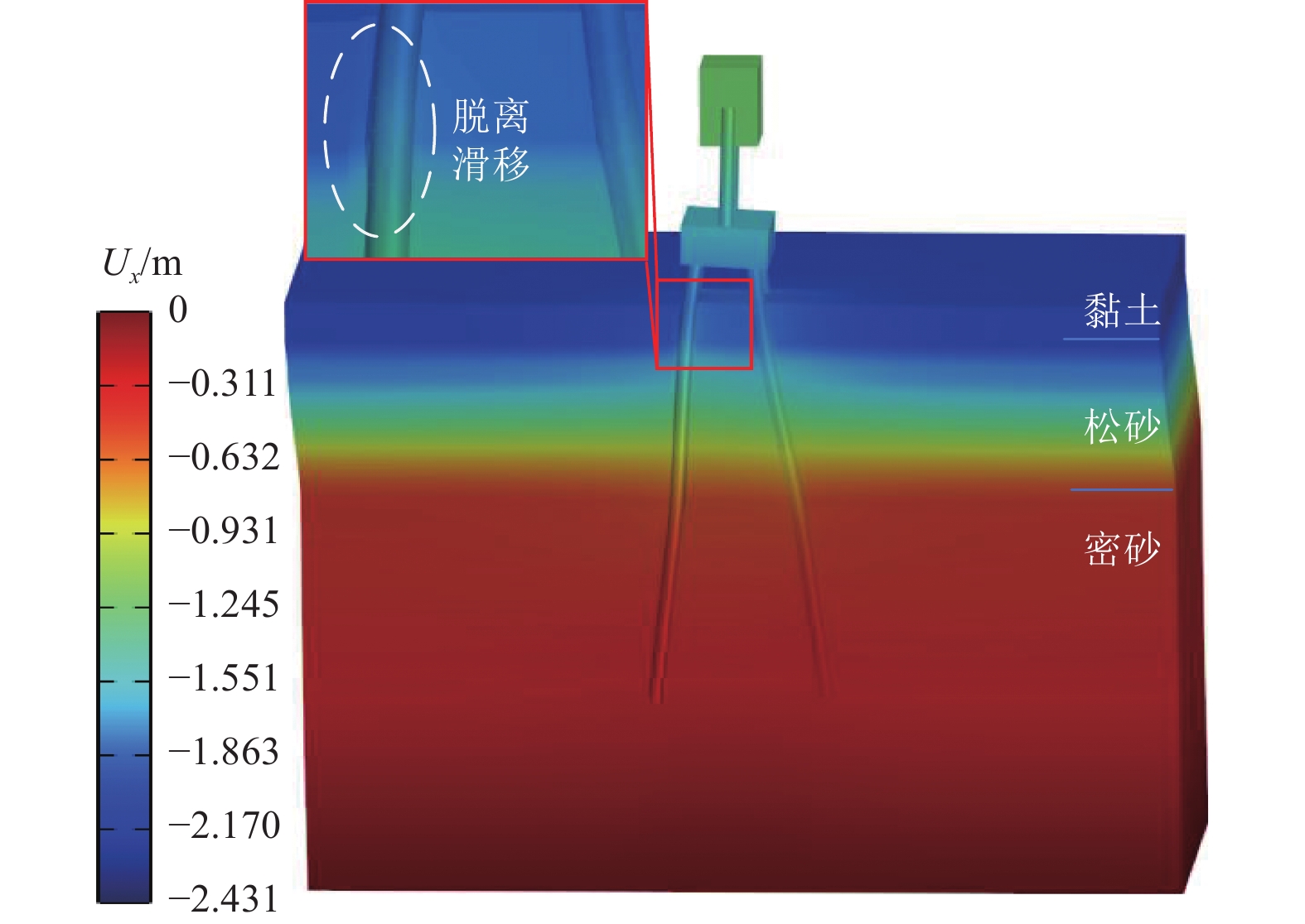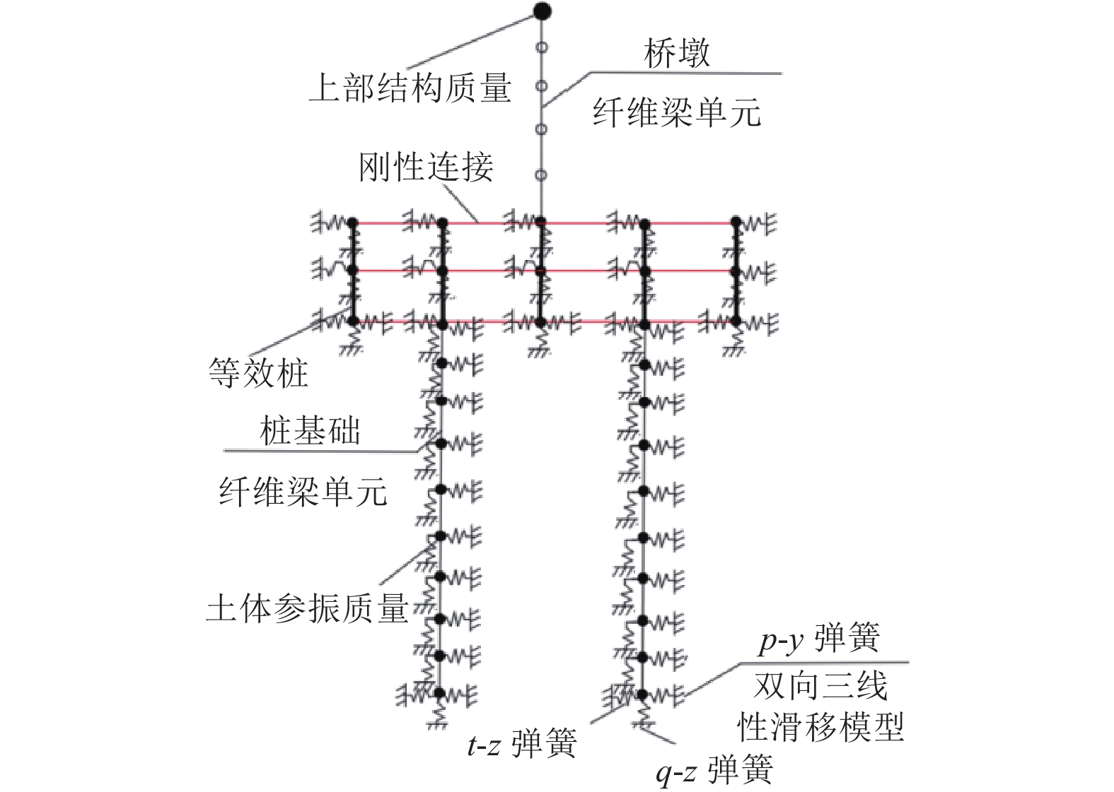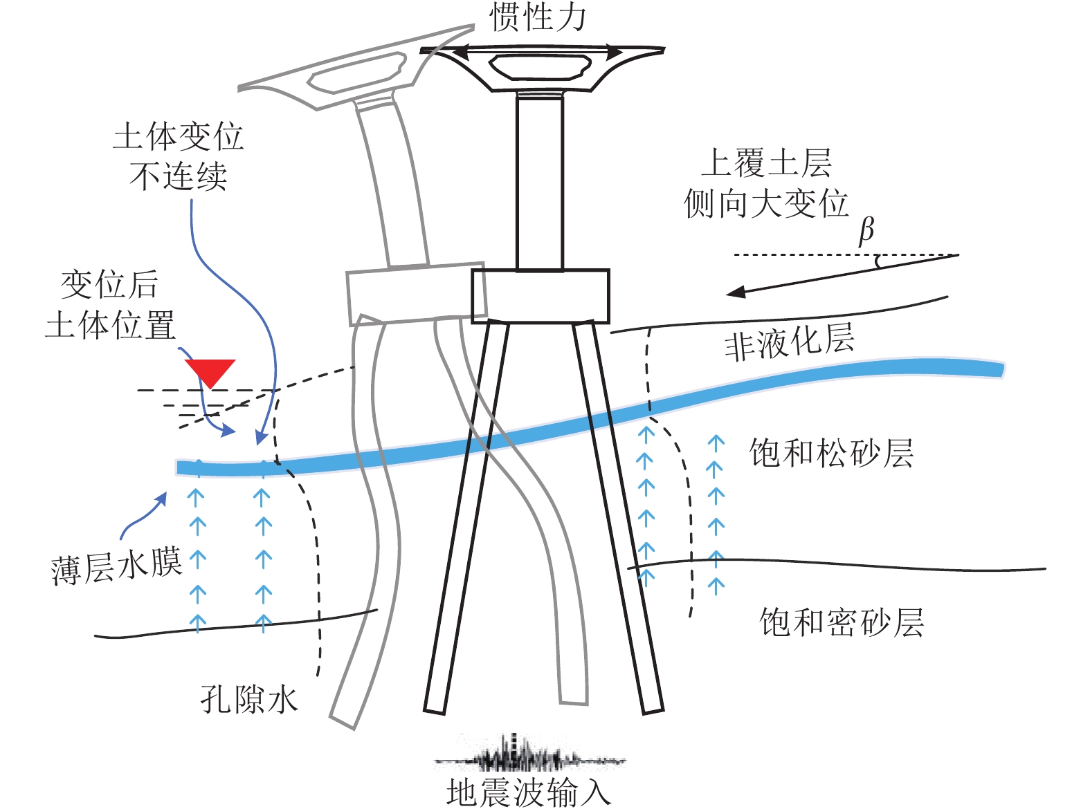 震害调查表明,地震中土体液化引发场地发生侧向扩展致使桩基损伤进而耦联上部结构倒塌的案例常有发生,在近滨海地区的地层中更为显著。此外,斜桩与直桩在地震期间表现出不同的震害特征。基于此,采用高效多尺度全耦合三维精细化数值模拟方法,开展了液化侧向扩展场地直斜群桩桥梁体系地震响应研究。采用变渗透系数模型考虑液化过程中渗透系数的变化,引入主-从薄层接触单元模拟桩-土接触面脱离与滑移。研究结果表明:强震激励下,土体液化后场地发生侧向扩展,上坡桩与下坡桩呈现相反的轴向响应。桩基与土体之间出现明显的脱离、滑移,传统的绑定接触不适用于侧向扩展场地。斜桩与直桩在近场表现出不同的变形模式,上部结构沿不同的方向发生弯曲变形。与直桩相比,斜桩表现出更显著的桩钉效应,能够更有效地抵抗场地侧向扩展,明显降低土体、桩基、上部结构水平位移与加速度响应,提高体系抗震性能。但在工程设计中,需要重点关注斜桩体系的竖向位移。