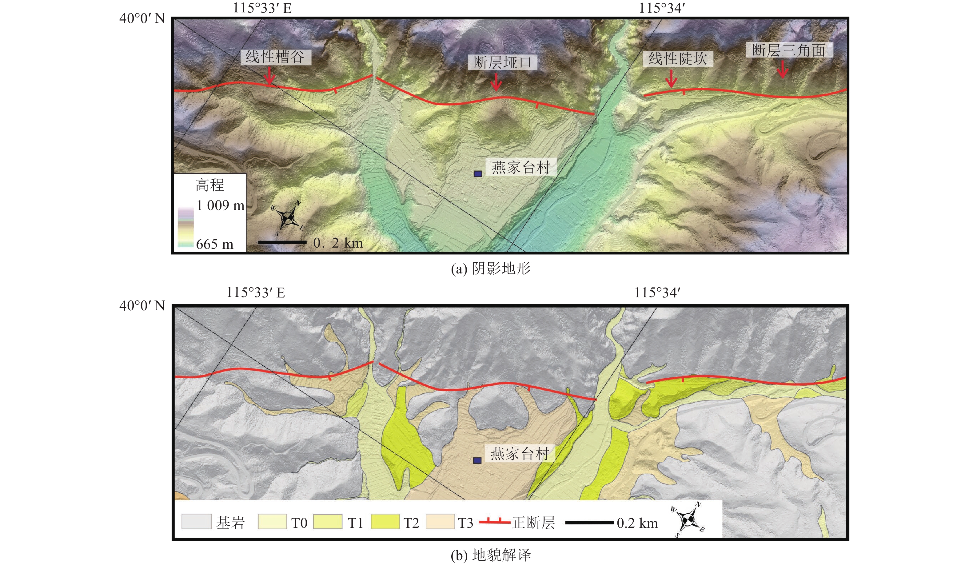 本研究利用机载LiDAR技术详细解析了紫荆关断裂双塘涧-老峪沟段的平面几何特征。通过高分辨率地形数据揭示了断裂的地表迹线和平面展布特征,分析了紫荆关断裂与南口山前断裂的几何连接关系。研究显示,紫荆关断裂沿线主要发育山地、河谷及洪积扇地貌,其中山区表现为断层崖和断层三角面;河谷内普遍发育T0、T1阶地,而T2阶地较少。断裂双塘涧-老峪沟段由多条分支断裂组成,形成右阶斜列形式,这些分支断裂具有明显的线性特征,主要沿山间谷地分布。马套村以南的两条断裂交会部位解译数据显示,紫荆关断裂与南口山前断裂在地表的连接特征呈现复杂性与不连续性,紫荆关断裂表现为较弱的活动性,主要以正断层为主,而南口山前断裂为晚更新世活动断裂,具有显著的倾滑特征。两者的活动性及几何形态差异可能受构造应力场的影响,导致局部断裂重叠、错动以及相对位移,从而形成不完全连接的现象。这些发现为理解华北地区拉张构造背景下的动力学特征与运动学机制提供了新的视角,并对该地区的地震风险评估及地质研究具有重要意义。