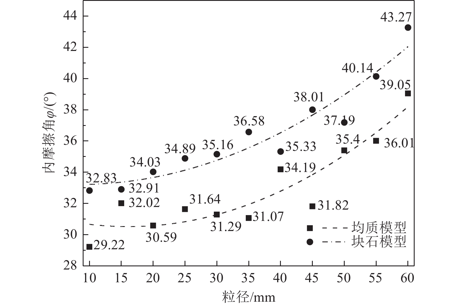 为了探究碎石粒径变化和大碎石含量对土石混合体抗剪强度参数内摩擦角的影响特征,本文采用离散元PFC 3D,并基于西南某泥石流堆积体级配特征,对其粒径大小从10~60 mm和大粒径碎石含量从10%~90%等试样构建岩土体柔性三轴数值模型共计44个,开展数值试验分析。模拟结果表明:对比相同粒径的均匀圆形颗粒模型与不规则碎石模型,其内摩擦角随着粒径的增大呈现出增大趋势,且后者内摩擦角大于前者,最大内摩擦角分别达到39.05°和43.27°;当碎石粒径<30 mm时内摩擦角的增幅不明显;相同粒径条件下,碎石模型的内摩擦角大于均匀圆形颗粒模型,揭示了内摩擦角会受到碎石颗粒形状的影响;大碎石含量对岩土体内摩擦角起着一定的控制作用,对比混合粒径碎石模型和土石混合模型,其内摩擦角随大碎石含量的增大而增大,前者内摩擦角的增幅小于后者,当大碎石含量>50%时内摩擦角的增幅较为明显,两者内摩擦角的增幅分别为8.34°和14.08°;当粒径分布特征指标中的限制粒径d60在10~30 mm,其内摩擦角随d60的增大而增大,当d60>30 mm后,其内摩擦角随d60的增大而减小。