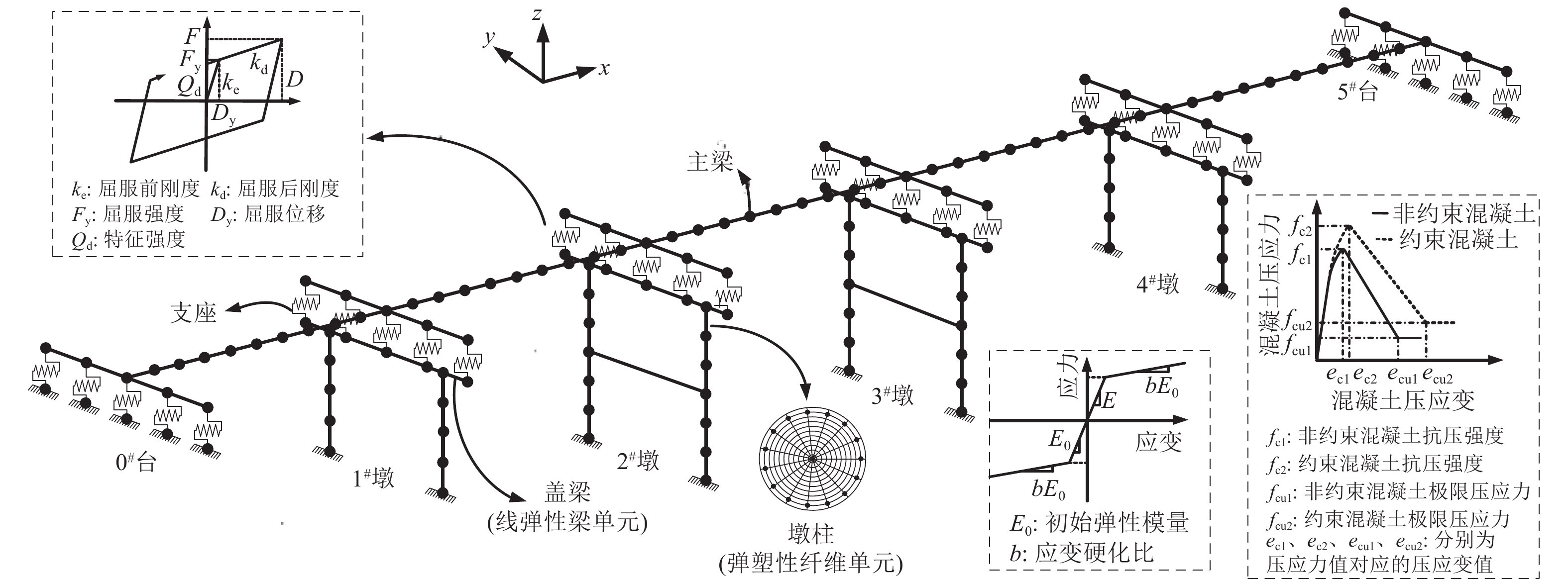 排架墩在中小跨径公路桥梁和城市高架桥中应用广泛,历次破坏性地震中也暴露出了其显著的震害问题。为了提升排架墩桥梁的整体抗震能力,本研究采用防屈曲支撑(Buckling-Restrained Braces, BRB)作为保险丝构件,以实现对排架墩的地震损伤控制。选取一座典型的五跨连续梁桥作为研究对象,对4组不同排架墩进行基于位移的抗震性能提升设计,并使用OpenSees软件建立全桥动力分析模型。选取特定的地震动记录,以桥墩位移延性系数和支座剪应变为损伤指标,通过云图法对安装BRB前后桥梁进行概率地震需求分析,对比其概率地震需求模型、易损性曲线和危险性曲线,重点研究关键承重构件的易损性曲面随初始刚度比和屈服位移比的变化情况。结果表明,安装BRB后,各个桥墩的损伤得到了明显控制,且初始刚度比和屈服位移比对损伤控制起到了关键作用。同时,安装BRB对各个支座的损伤也产生了一定影响,在轻微损伤状态下,其影响不大,但在完全破坏状态下则存在明显差异。在相同损伤状态下,桥墩的地震损伤超越概率随初始刚度比的增加而减少,且随屈服位移比的增加而下降,并逐渐趋于稳定。