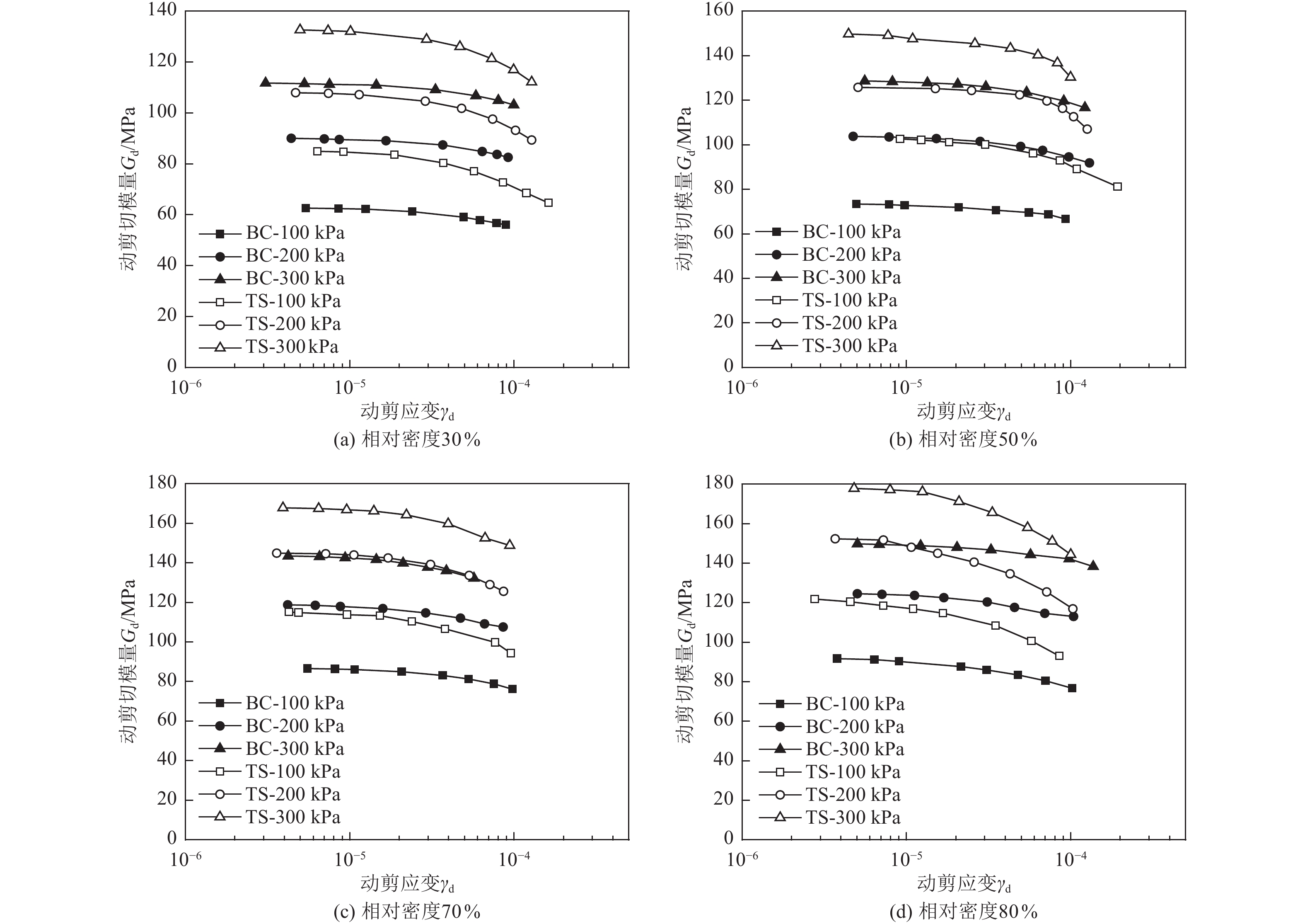巴楚地震液化砂土标贯击数与锥尖阻力指标普遍偏大,却仍然发生广泛液化,原因至今没有查明。选取唐山地震和巴楚地震典型液化砂土,进行室内土工试验,对比两种砂土物性指标差异,并分别按相对密度30%、50%、70%、80%制样进行共振柱试验,试验发现:(1)相同相对密度下,唐山砂土干密度大于巴楚砂土,孔隙比小于巴楚砂土,试样中固体颗粒更多,孔隙更少。因此,唐山砂土的动剪切模量和阻尼比都高于巴楚砂土。然而,共振柱激振作用会导致土样内部结构发生变化,由于巴楚砂土颗粒更加均匀且颗粒比重更大,其动力稳定性高于唐山砂土。(2)随着固结应力的增大,唐山砂土动剪切模量比与动剪应变关系包络线范围逐渐收窄,符合一般规律。巴楚砂土在300 kPa的固结应力下,包络线范围反而变得更宽,体现了巴楚砂土明显的剪胀效应。(3)在同样的固结应力下,常规相对密度范围内,巴楚砂土剪切波速小于唐山砂土。然而,随剪应变增大,巴楚砂土动力稳定性更强。这表明仅用剪切波速判别土体液化存在问题,因为剪切波速代表土体小应变时的状态,而液化则是土体在大应变时的状态。从这个角度来说,标准贯入试验和静力触探试验中土体都处于大应变状态,与液化状态更相似,可以建立更好的相关关系。