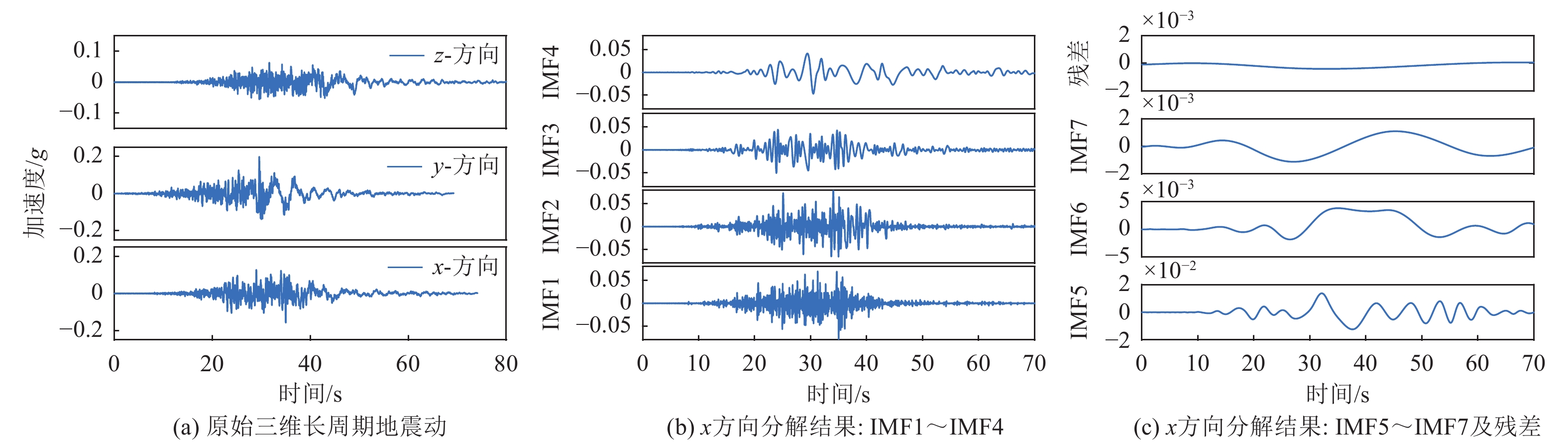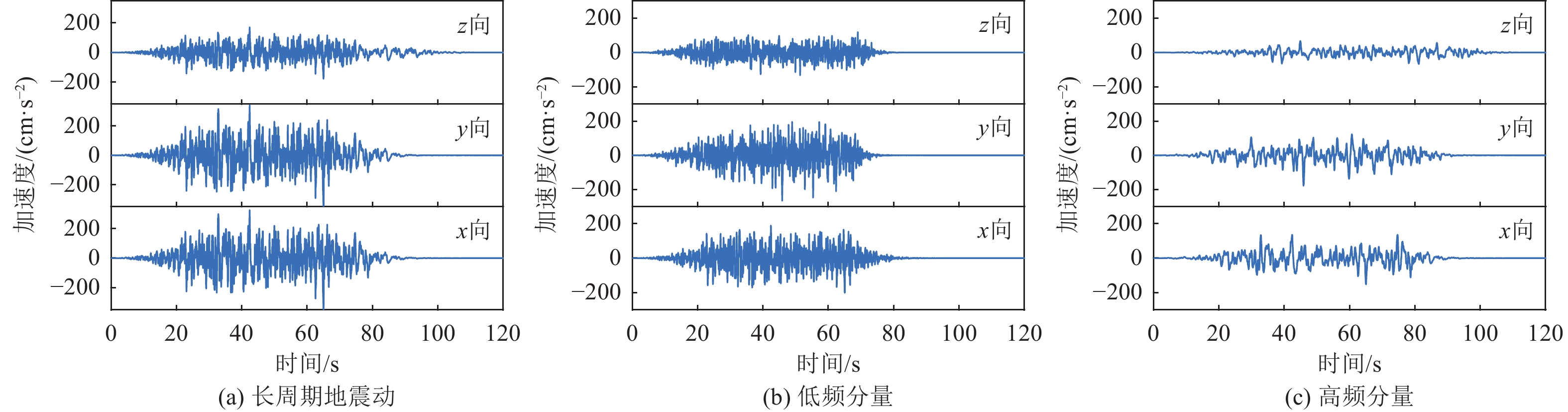 长周期地震动中显著的低频成分对复杂、大型柔性结构的动力响应有着不可忽视的影响。因此,合理地随机建模长周期地震动是进行大型柔性结构抗震分析与设计的关键。然而,现有的模型未能充分考虑长周期地震动的多维性,并且缺乏与规范一致的推荐参数值。为了应对这一挑战,本研究提出了一种方法,基于实测地震动数据,采用经验模态分解(EMD)技术,将长周期地震动分解为高频和低频成分,以便独立研究其频谱特性。这一方法为理解长周期地震动复杂的频谱特性奠定了基础。接着,本文初步识别并统计分析了高低频成分的演化功率谱密度(EPSD)函数参数,进一步揭示了长周期地震动的频谱特性及其变化规律。在此基础上,利用本征正交分解(POD)方法,分别模拟了不同方向的高频和低频成分样本,并重构了三维长周期地震动过程。数值算例与验证结果显示,所生成的代表性样本能够真实反映长周期、三维地震动的动力学特征,具有较高的工程准确性与实用性。本研究提出的长周期地震动随机模型不仅能够有效捕捉地震动的低频特征,初步探索了对长周期地震动工程特征随机建模,还为后续的精细化研究提供了坚实的理论依据和技术支撑。