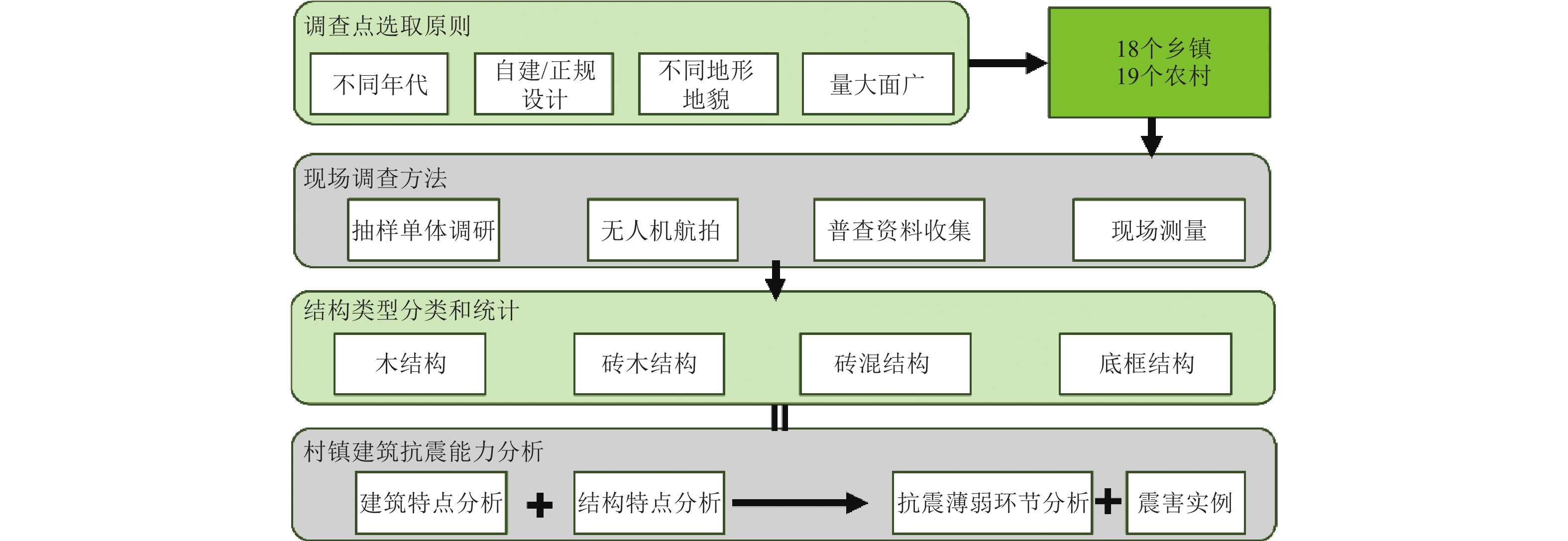 四川东北区域包含南充、达州、巴中等市,被龙门山等多条断裂带包围。为进一步评估和掌握四川东北区域村镇建筑物抗震能力现状。本研究对位于四川省东北部区域的7市37个调查点的村镇建筑物进行了现场调查分析。结合调查资料、无人机航拍及单栋抽样详查等方法,本文分析了调查区域内乡镇与农村建筑的分布差异性,总结了4种结构类型(木结构、砖木结构、砖混结构、底框结构)在抗震措施、建筑特点、建筑材料、分布情况等方面的信息,并结合实际震害资料分析其抗震薄弱环节,以期对四川东北区域村镇建筑的防震减灾工作提供理论支持。其中,老旧木结构和砖木结构几乎未设置抗震构造措施,抗震能力较差;早期砖混结构与底框结构均未按规范设置圈梁和构造柱,且悬挑和出屋面构件往往缺乏锚固措施,抗震性能薄弱。在遭遇当地基本设防烈度地震作用时,这些建筑极易受到破坏,抗震能力现状不容乐观。