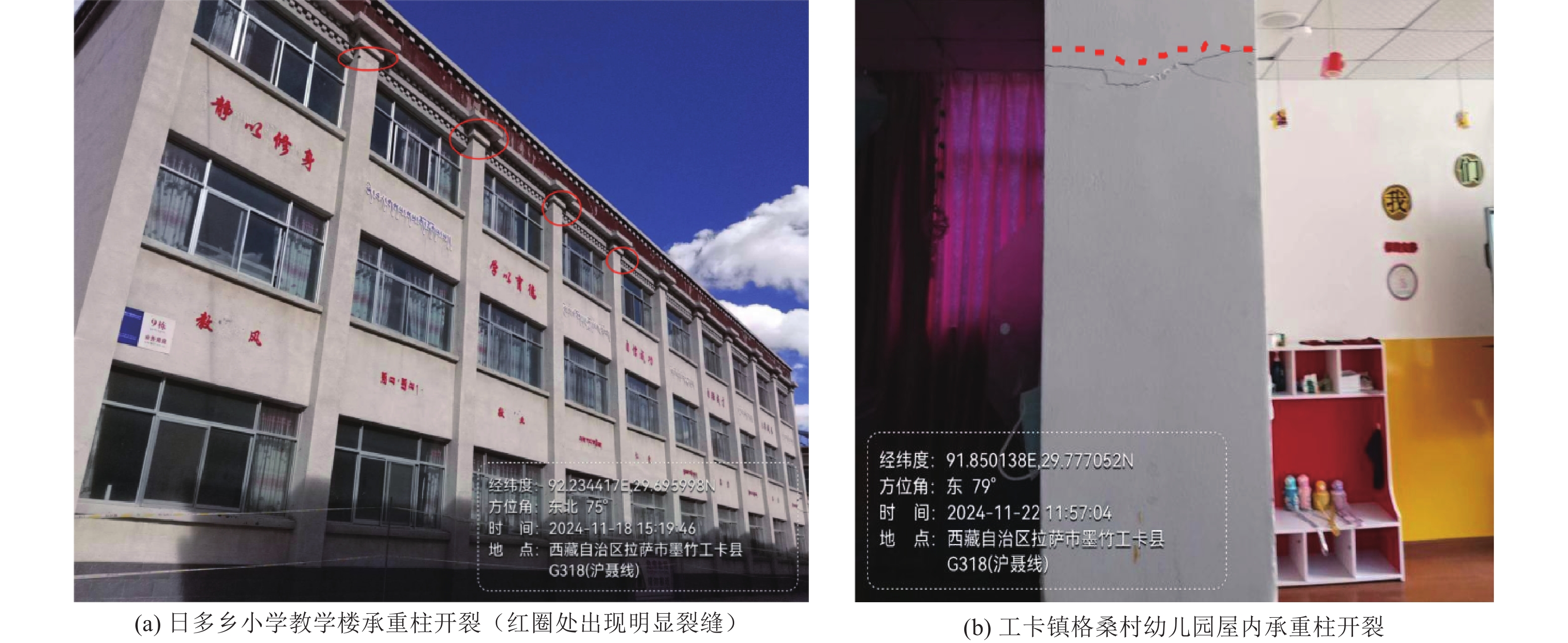 据西藏地震台网测定,2024年10月17日00时至2024年12月9日10时,西藏墨竹工卡记录共发生18次3.0级及以上地震,受此震群影响,震区内两种主要结构房屋出现不同程度破坏。通过实地调查,对受灾地区内石木结构和框架结构房屋的震害特征进行了总结和分析,发现造成石木结构房屋受损严重的主要原因是房屋自身的设计不利于抗震、施工质量差、建造年代久远、短时间内地震频发以及场地效应加重震害等,而框架结构受损的主要原因是施工质量不达标、地震力的持续作用和场地效应。本文对两种结构的震害现象及原因进行了详细描述,并提出针对性的后续建议。通过本次地震实地调查可知,尽管震级不大,但连续多次的地震作用仍然会对建筑物造成一定震害,应加强本地现有传统民居的抗震性能,避免出现小震大灾的现象,同时公共建筑应加装减隔震设备。