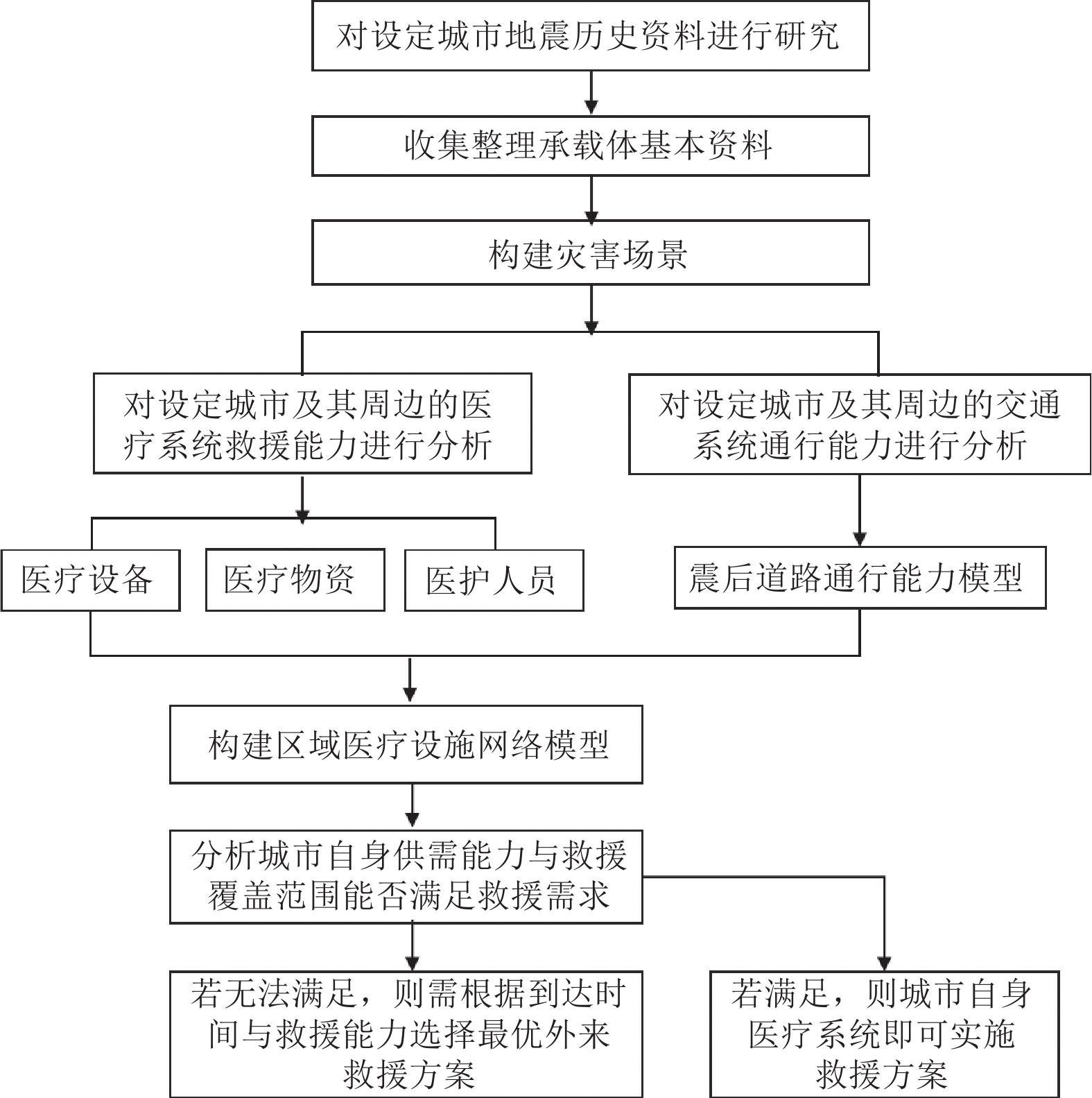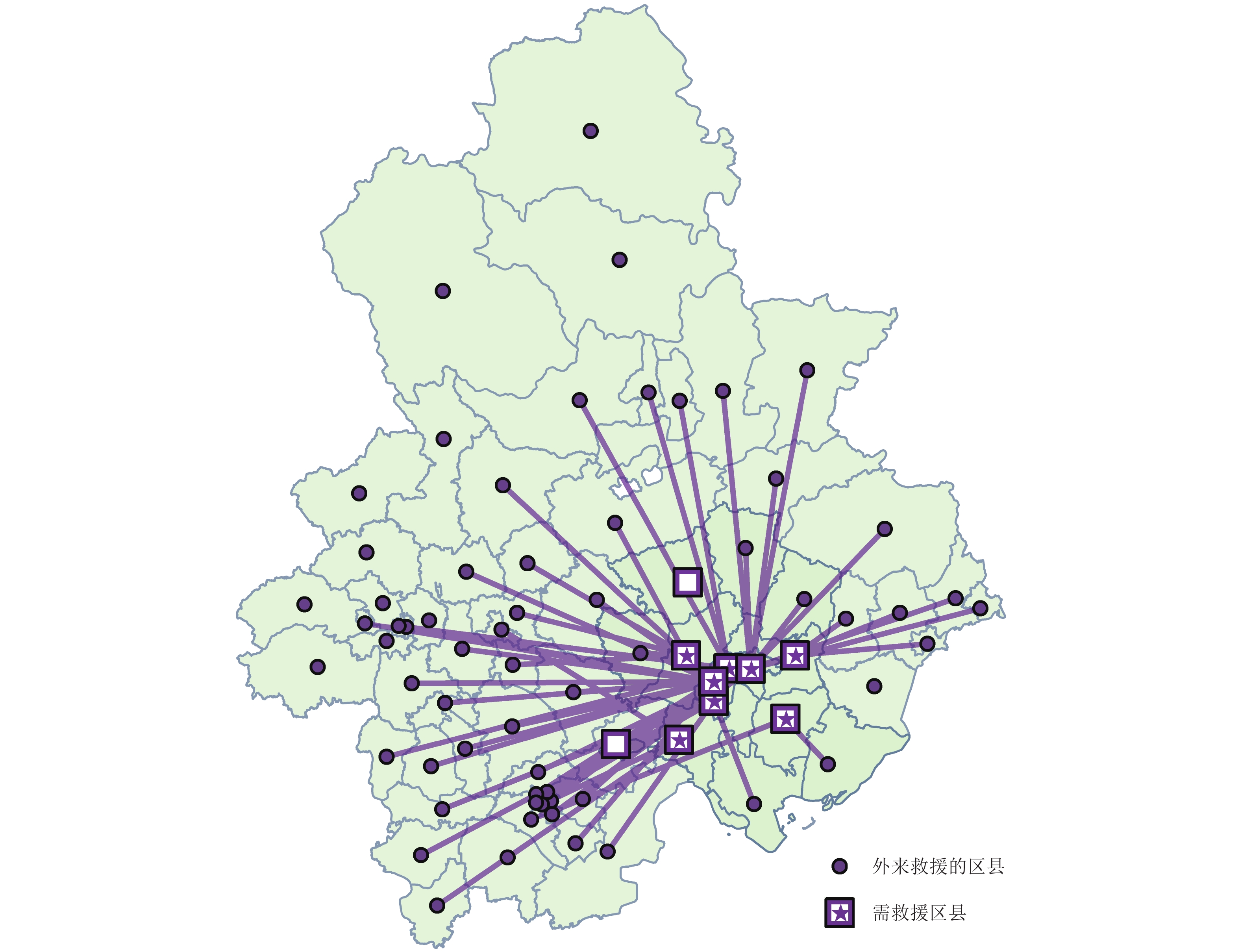 对伤亡人员的救治是震后应急救援工作的首要内容,医疗系统作为救治伤员的主力,其震后的功能损失和恢复能力决定了震后救援的效率。本文选取区域尺度的医疗系统,通过情景构建的方法研究强震情景下的区域协调救援。首先对震中城市的震后供需状态、医疗系统救援能力进行分析,并考虑道路系统损失对震后救援的影响,分析城市震后应急救援能力。在城市医疗系统不足以支撑自身救援的情况下,考虑区域其他城市协同救援,对周边城市医疗系统救援能力进行分析,协同救援的城市需遵循城市内外两层供需平衡的逻辑,统筹考虑周边城市的资源容量限制与总救援时间最小化问题,从而选择最优救援方案,为京津冀区域强震情景下协同救援提供思路。