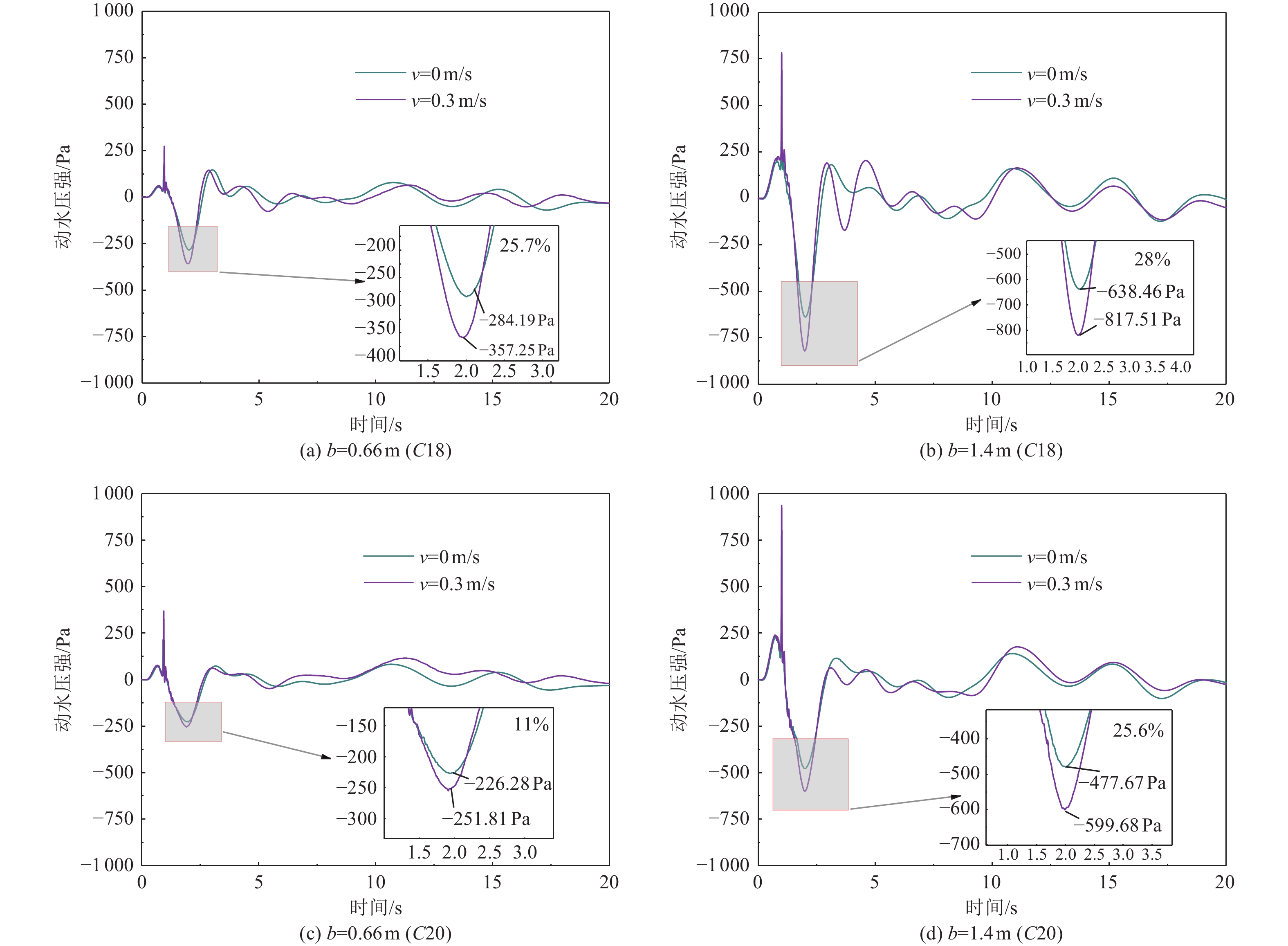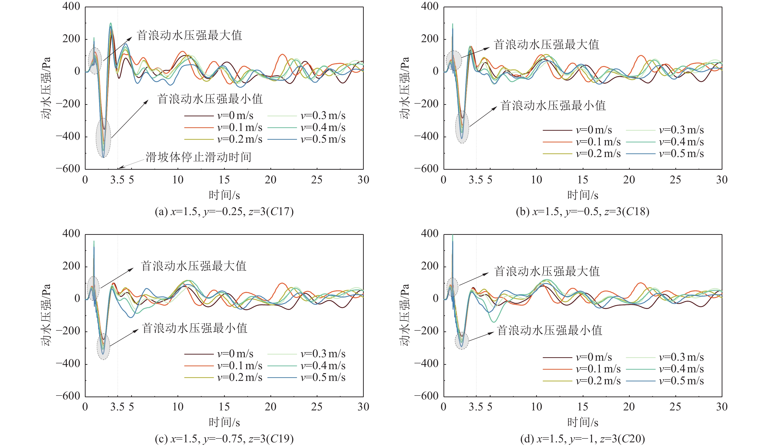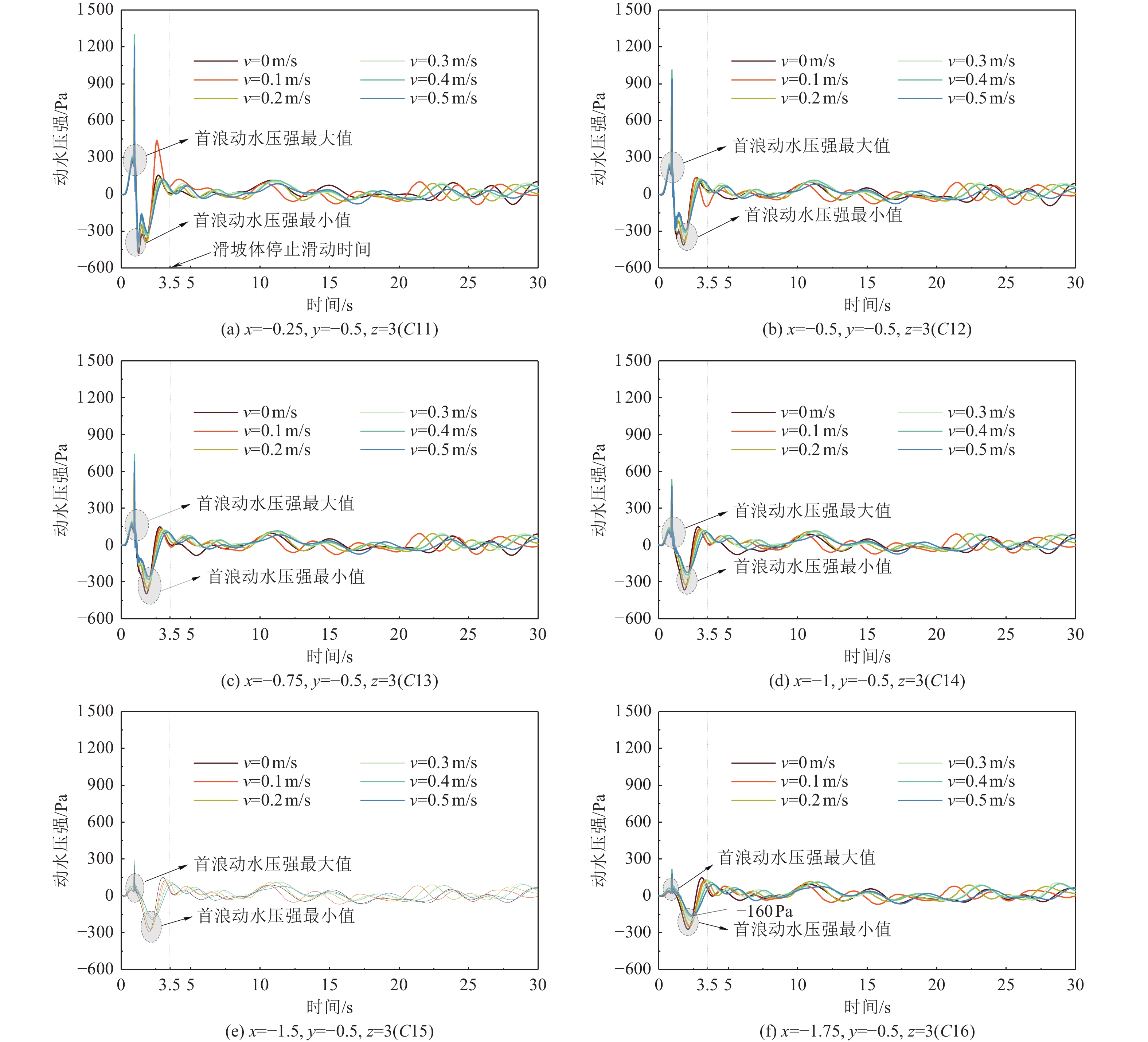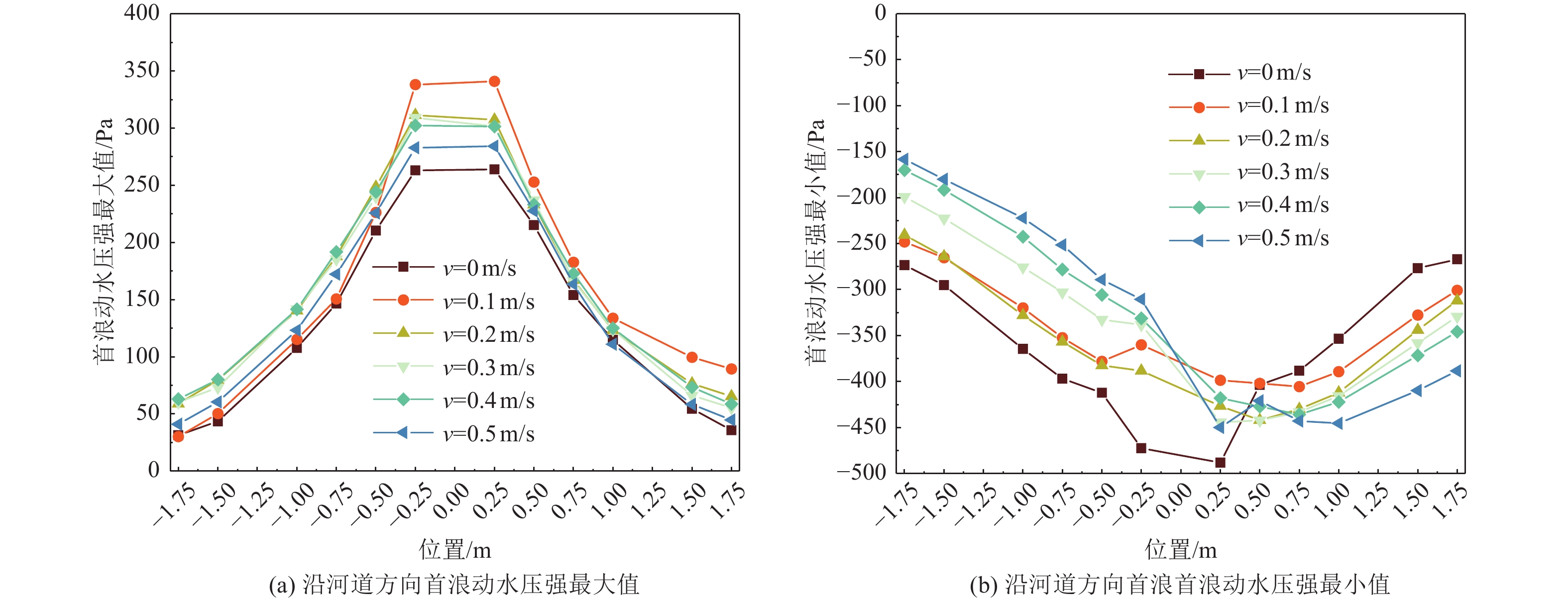 西部山区由于其地形地势特点,极易发生地震滑坡等灾害,滑坡体高速入水产生涌浪,对建筑结构造成巨大危害。本文基于计算流体动力学(CFD)的FLUENT软件,建立了滑坡涌浪三维数值模型,通过已有的物理模型试验验证了该数值方法的有效性,进一步探讨了水流动力作用下滑坡涌浪的传播规律及动水压力的变化规律。数值模拟结果表明,考虑水流作用后,涌浪波高的变化随着流速的增加而增大,流速0.5 m/s时波高约为无水流的3倍;不同测点处首浪动水压强最大值,以及动水压差会不同程度受水流作用的影响,动水压差最大能达到600 Pa;当滑坡体的宽度增加1倍时,波压波动的相对变化增加了15%;滑坡体滑速增大1 m/s时,波压波动的相对变化增加了约17%。