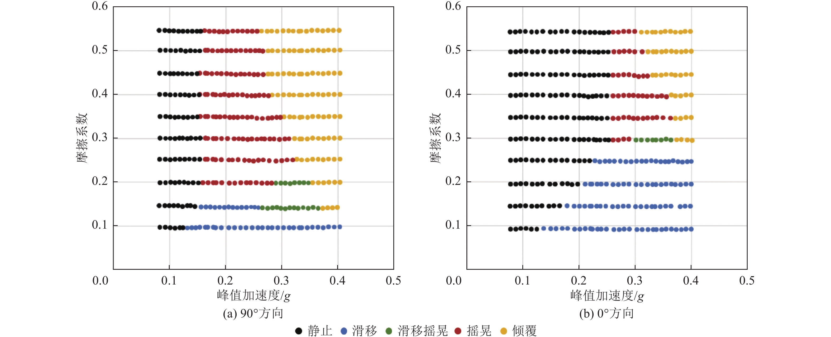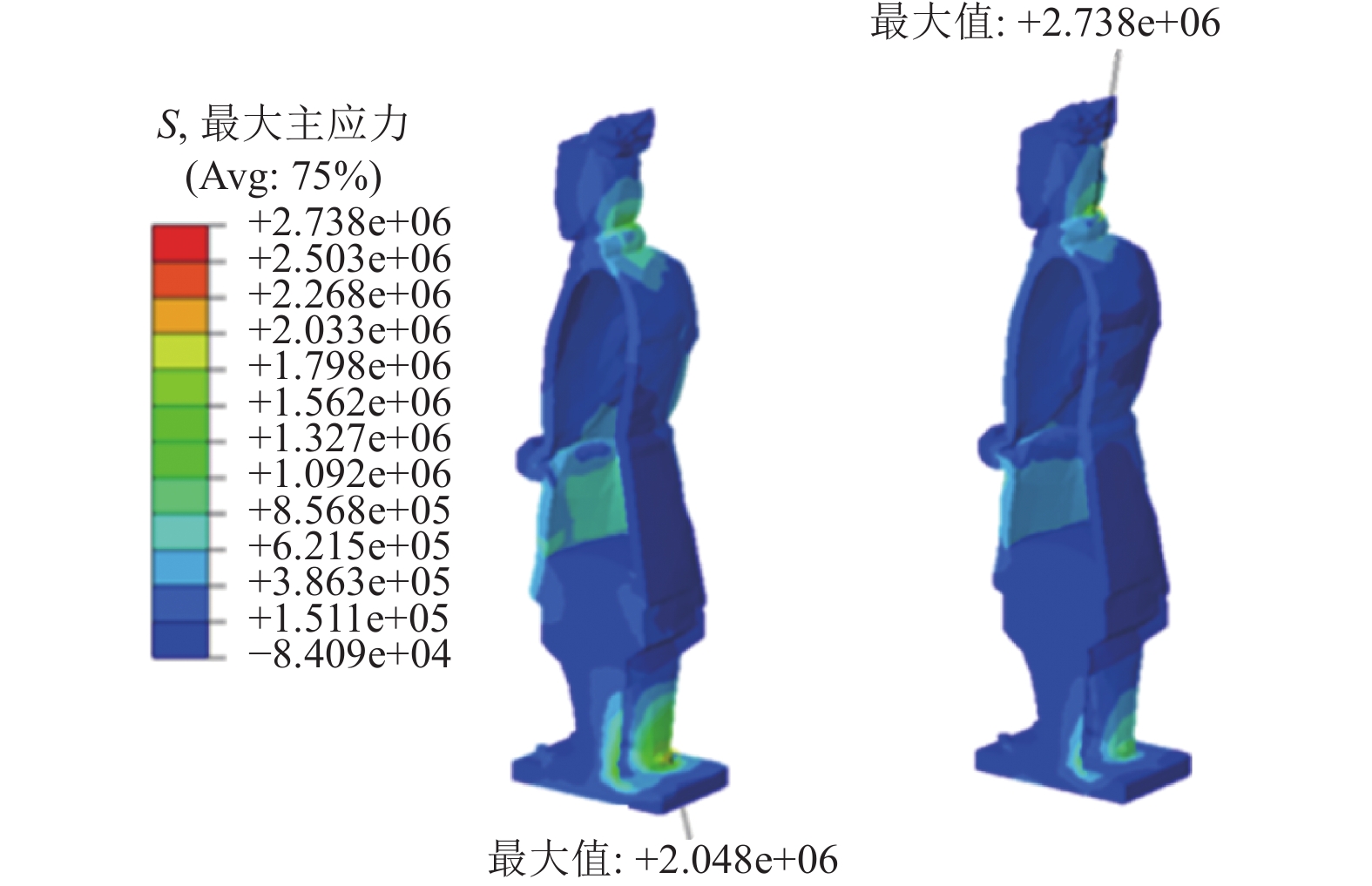 为了分析兵马俑的地震响应情况并探讨不同因素对兵马俑抗震性能的影响,对武士俑进行建模与有限元计算。通过时程分析确定兵马俑的运动状态和启动滑移、摇晃的地面峰值加速度临界值,并以刚体运动理论进行对比,得到了摩擦系数、重心高度、地震大小、地震方向对兵马俑的抗震响应影响。结果表明,兵马俑在地震中会发生静止、滑移、滑移摇晃、摇晃或倾覆5种运动状态。随着摩擦系数和地震加速度增大、宽高比降低,兵马俑更容易在地震中发生摇晃或者倾覆,反之则更倾向于滑移或静止。当兵马俑发生倾覆时,颈部与腿部将发生断裂破坏,其余运动状态材料均未出现失效。俑的前后向最易失稳,该方向宽高比也最小。兵马俑地震响应的数值模拟结果与刚体理论分析基本一致,可以将兵马俑看作刚体并采用理论公式进行快速评估。
