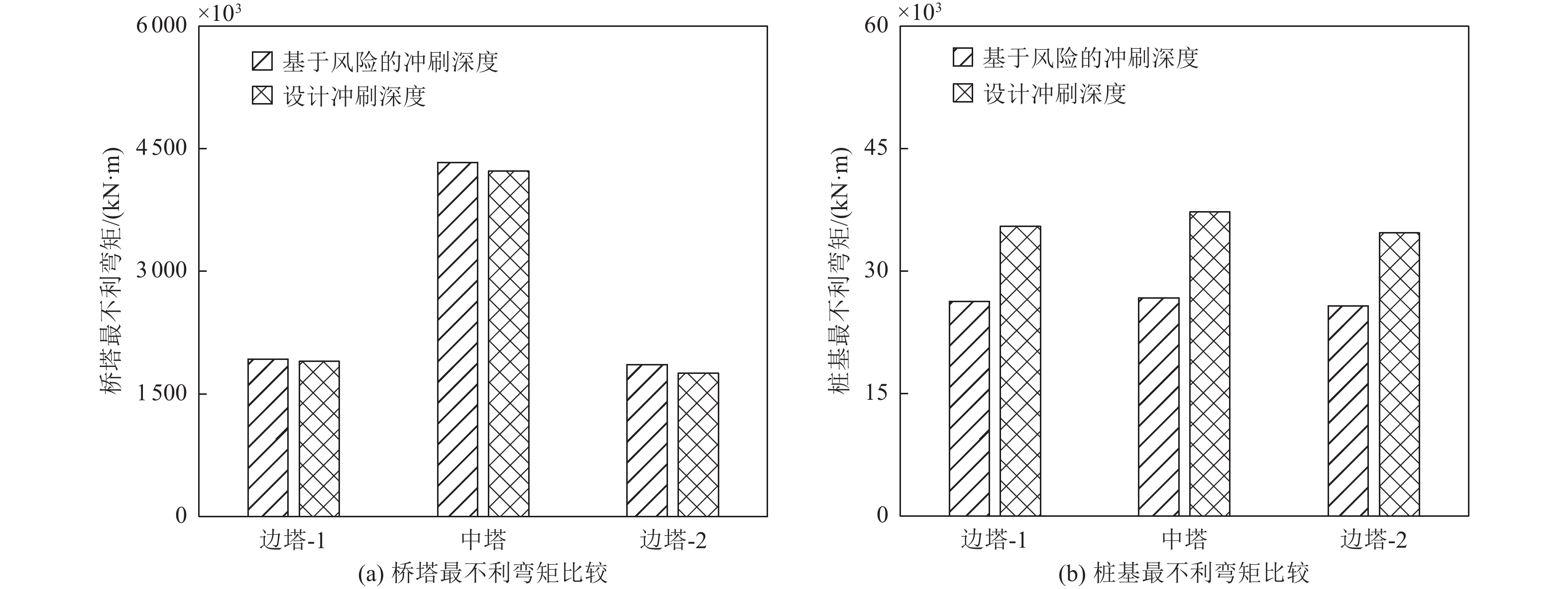 本文以某跨海三塔斜拉桥为研究对象,开展了地震-冲刷联合作用下三塔斜拉桥危险性分析,给出了合理冲刷深度计算方法。首先,提出了地震-冲刷联合作用下桥梁危险性分析流程。其次,建立了符合P-Ⅲ分布的地震危险性模型,利用蒙特卡罗模拟的数值结果拟合了冲刷危险性模型。同时,以该背景桥梁为原型建立了三塔斜拉桥的非线性动力分析模型,进行了一系列非线性时程分析,在地震和冲刷危险分析模型的基础上,建立了三塔斜拉桥在确定和可变冲刷深度下的破坏概率模型。最后,通过地震-冲刷联合作用下的破坏概率模型计算出合理的冲刷深度。本文提出的危险性分析框架和分析结果可为地震-冲刷灾害下类似桥梁的设计提供理论依据。