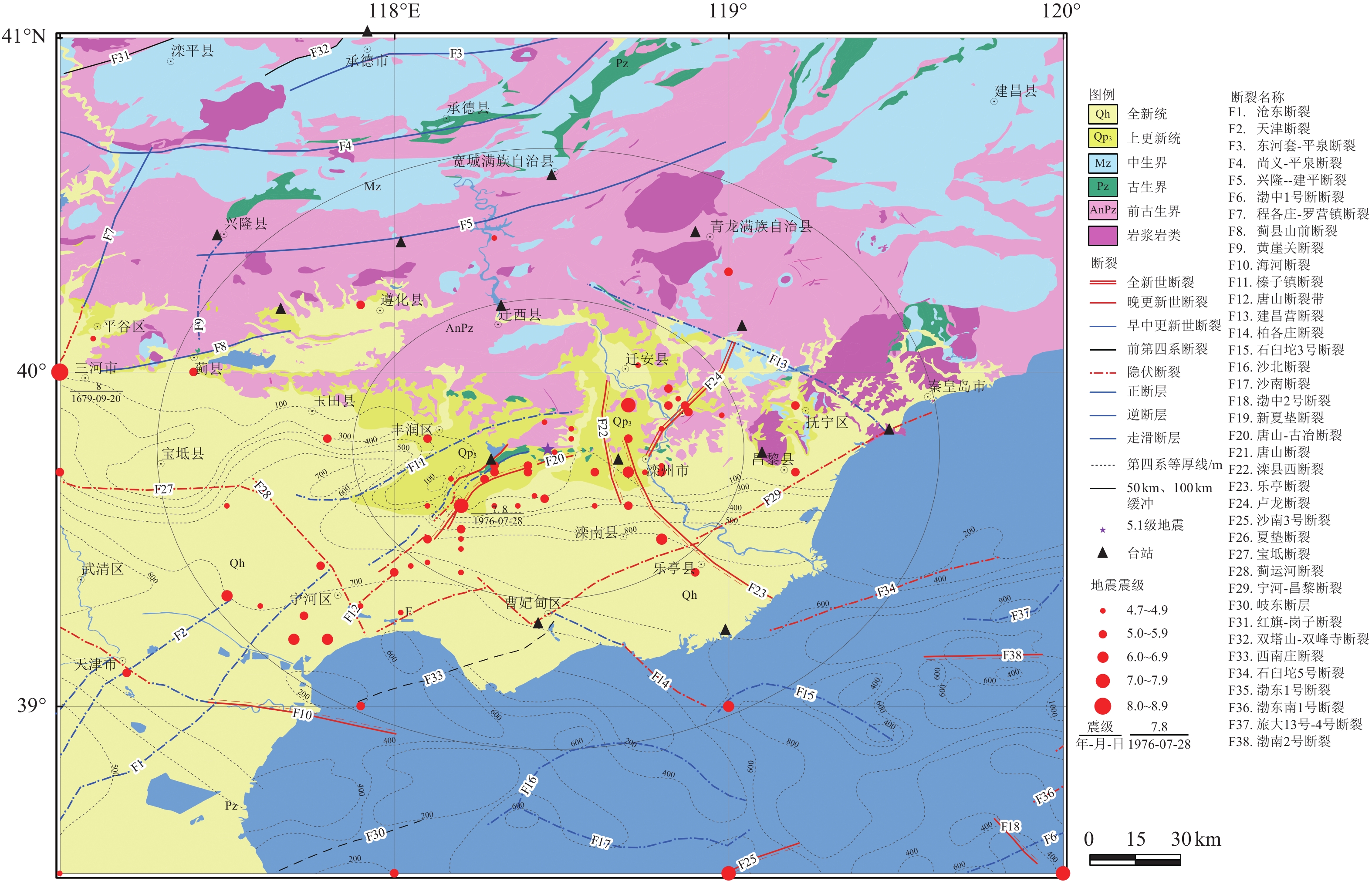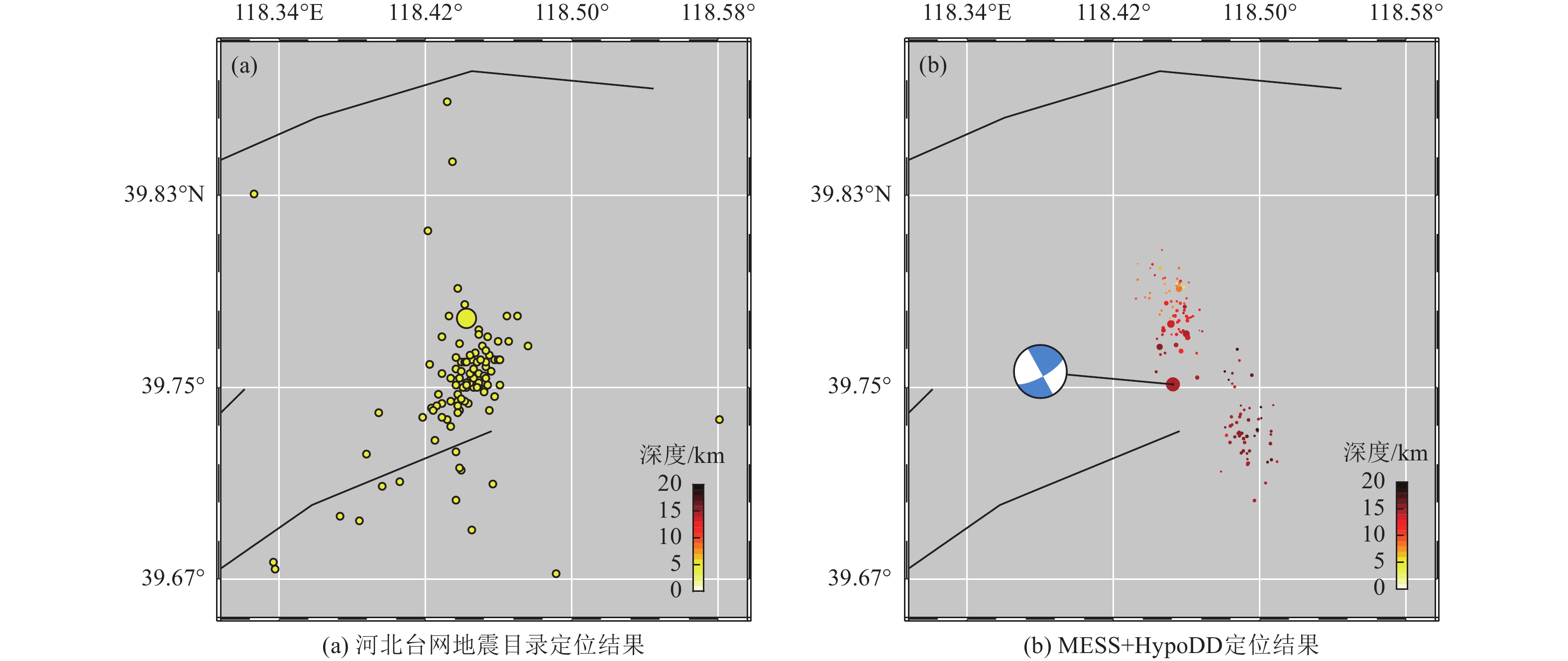 本文利用PALM(Phase picking, Association, Location, and Matchedfilter)全流程地震编目框架构建了2020年7月12日唐山5.1级地震前4天至后13天的高分辨率地震目录,共检测出135次地震事件,揭示了唐山地震序列的空间分布特征。从剖面看,唐山5.1级地震发震断层近直立,主震发生在深部15 km处,余震分布呈现从深到浅的趋势,整体分布呈现NW向,在东南部深度15 km处出现了微震丛集,定位后的地震分布与震源机制解NW向界面一致性较好。结合该区的VP和VP/VS波速比分析,显示地震震中呈北西向展布,具有较好的收敛性,在深度8~12 km和20 km处存在着高波速比特征。