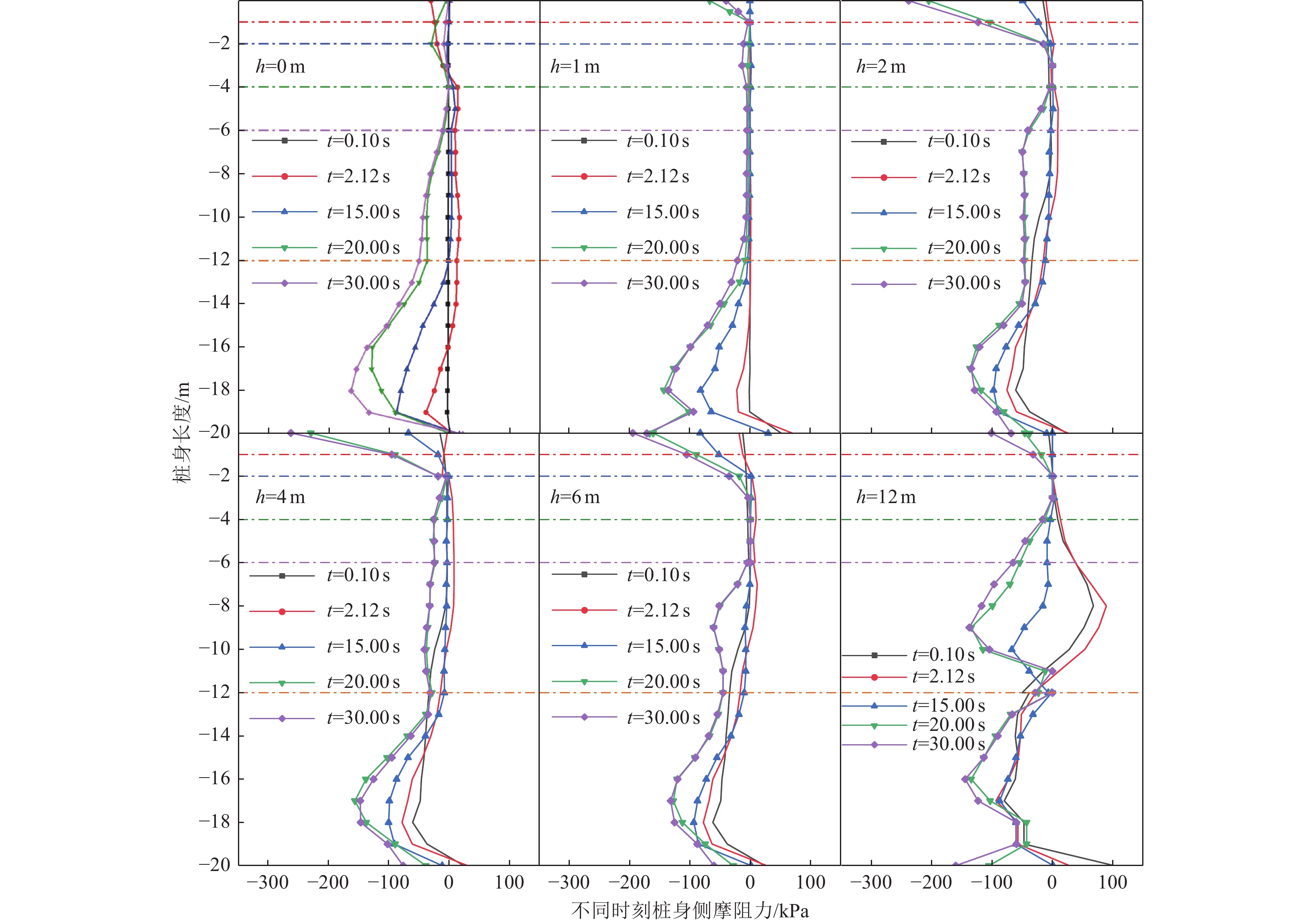 针对地震引起的地基土变形失效导致的桩-土脱空及桩基产生较大侧向变形问题,使用环境友好的新型绿色材料木质素对黄土工程场地的地基土进行加固。基于室内试验和数值模拟,考虑桩-土相互作用和改良黄土的加固深度,对木质素加固黄土工程场地的桩基抗震性能进行了研究。结果表明:(1)改良土层显著提高了桩周土体的横向约束刚度,增强了桩-土体系的整体动力刚度,从而提升了桩基抵抗高阶振动的能力,导致高阶频率向高频偏移,整体表现为频率上升。(2)改良土层可改变桩身反弯点位置,且两侧正负弯矩极值的绝对差值随改良深度h的增加先减后增;随h增大桩身位移整体呈减小模式,h=12 m时的桩头位移仅为h=0 m的27%。(3)改良土层可减弱桩-土相互作用系统的加速度响应,h=4 m时桩顶中心点的加速度放大系数最小,桩周土对桩基的支撑最强。(4)改良深度超过1 m即可将桩基的抗震性能从中等损伤Ⅱ类水平改善至基本弹性Ⅰ类水平;h=4 m时桩-土相互作用体系在震后的损伤及位移较小,综合考虑桩身震后的损伤、位移及地基土加固的经济性,可认为针对类似本文桩的桩长径比为20、配筋率为2%的模型,最优加固深度为4 m。(5)地震波的频谱特性对桩身弯矩的影响主要体现在桩身最大弯矩的最大值及反弯点位置,对桩身位移的影响表现在其沿桩身分布曲线的拐点数量及同一高度处桩身位移的数值差上,低频越突出,高频成分越丰富的地震波对桩身弯矩的影响越大,对桩身位移的影响反而较小。相关结论可为类似桩基加固的抗震性能提供参考。