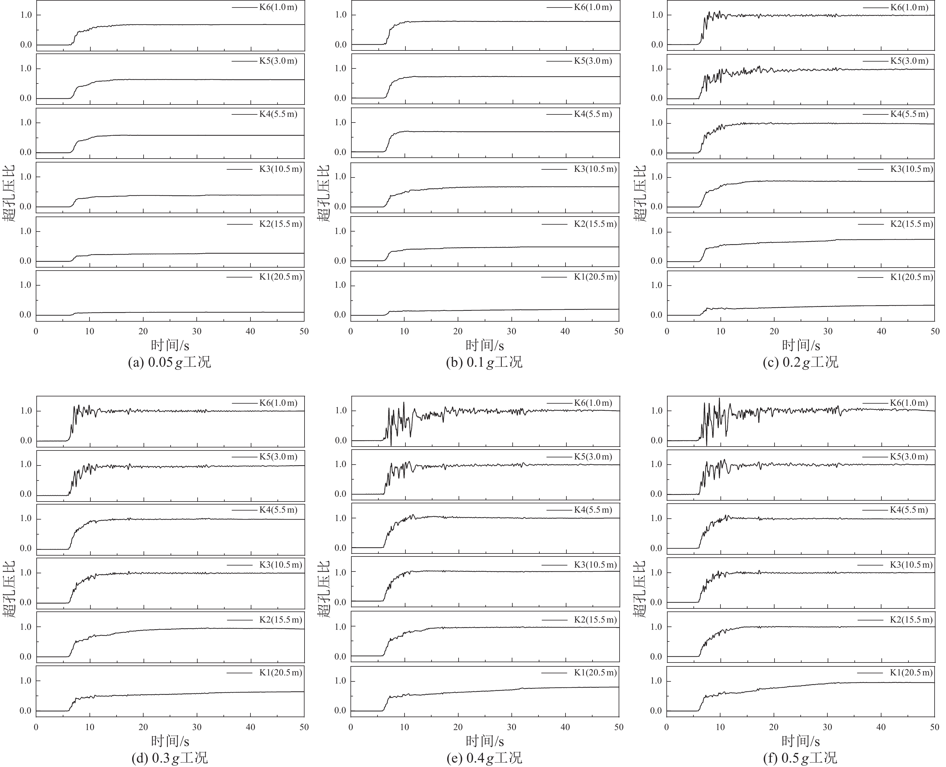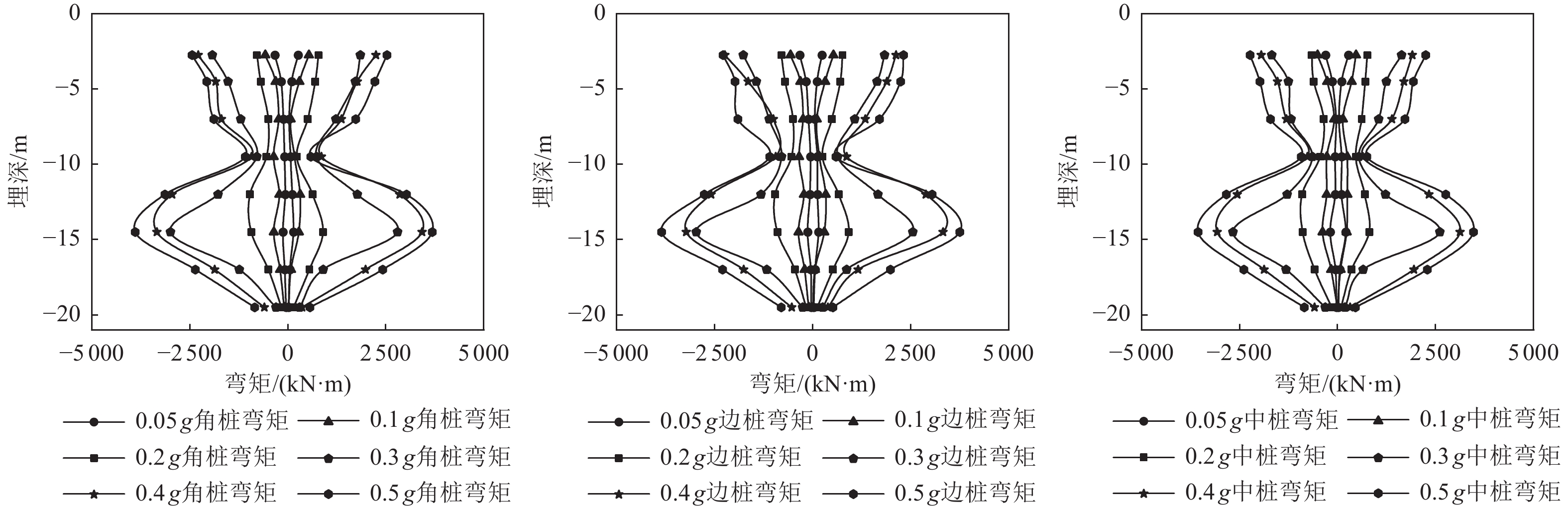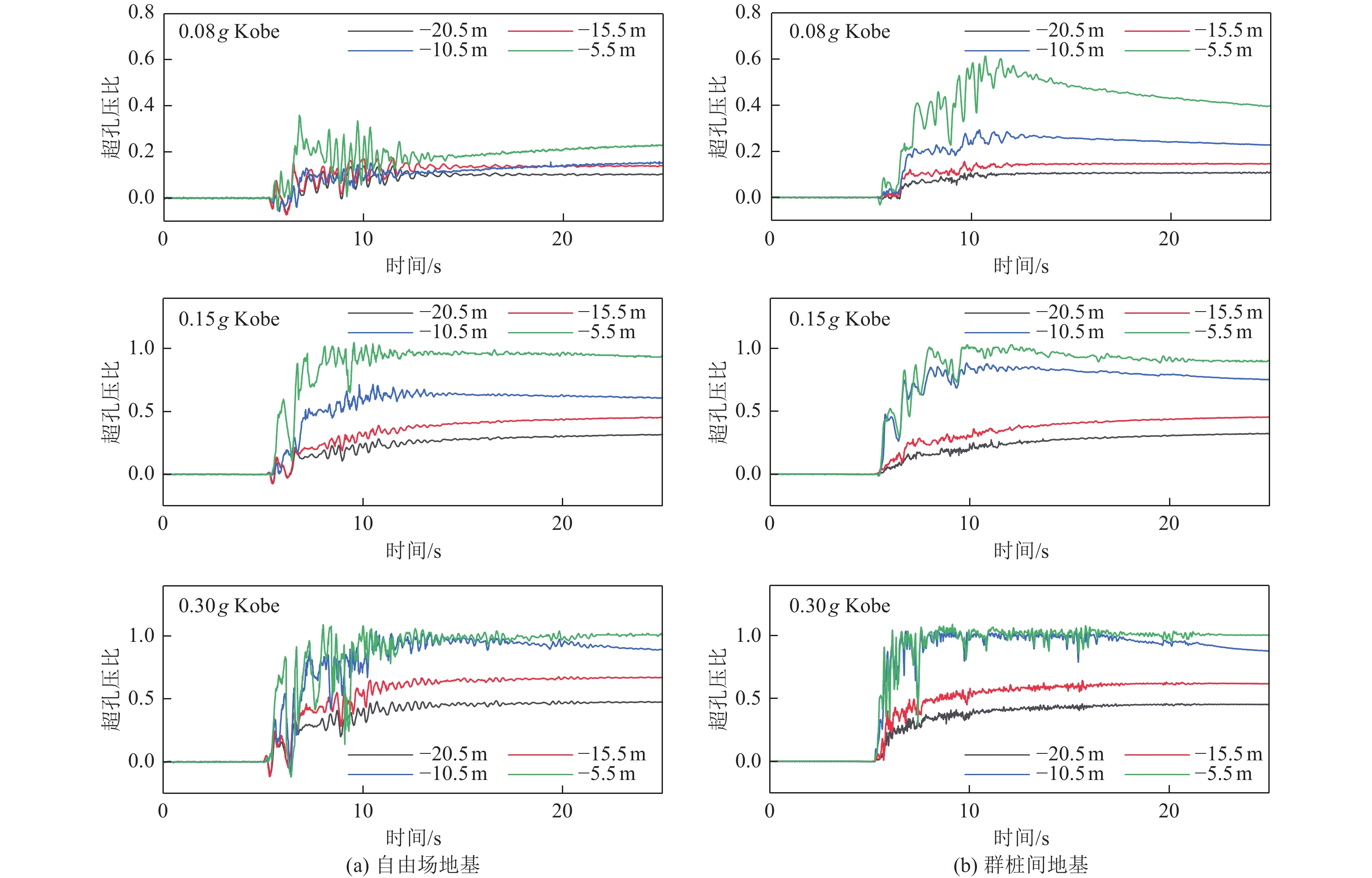 液化场地下高层建筑桩基抗震性能一直是防灾减灾工程中的热点问题,本文通过开展液化场地-桩筏基础-高层建筑结构体系动力响应大型离心机振动台试验,并基于STKO软件建立三维数值模型,通过对比土体超孔压比、土体加速度、上部建筑结构加速度和桩基弯矩等,验证数值模型的正确性和有效性;基于已验证的数值模型,输入不同峰值加速度的El Centro地震波,探究地震动强度对高层建筑桩筏基础的动力响应影响。结果表明,在相同地震波工况下,随着楼层的升高,楼层峰值加速度、最大位移逐渐增大,同时楼层峰值加速度放大倍数不断增加;在相同楼层处,随着地震动峰值的增加,楼层峰值加速度不断增大,楼层最大位移逐渐增大,但楼层峰值加速度放大倍数不断减小;小震作用下,土体并未发生液化,随着地震波峰值的增加,超孔压比上升的速度也随之加快,且土体超孔压比的波动程度随着地震动峰值的增加而变大;在小震作用下,桩身顶部会出现弯矩较大值,随着地震动峰值的增加,桩身弯矩峰值点位置下移,大震作用下,角桩、边桩及中桩的桩弯矩峰值均出现在液化层与非液化层交界处附近。