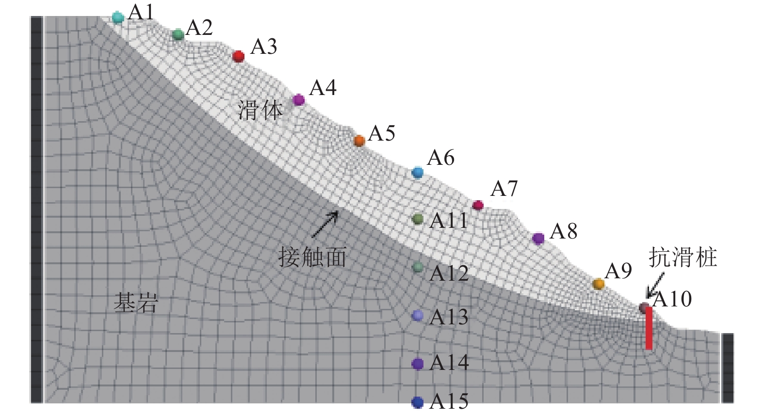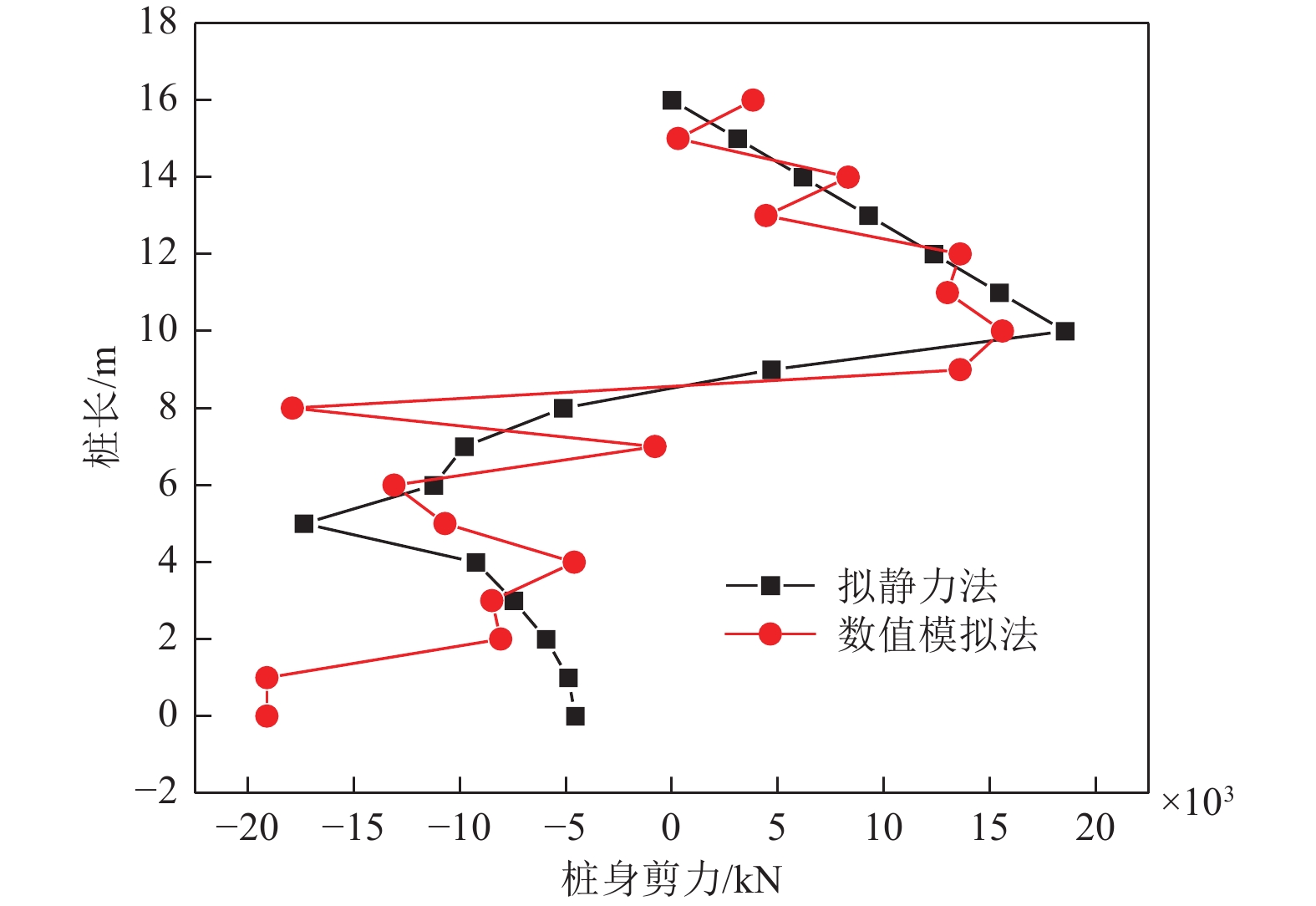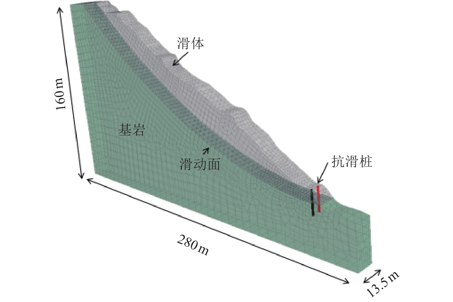 本文以北川王家岩南侧沈家包抗滑桩加固工程为背景,通过现场低应变测试、混凝土强度测试、FLAC 3D数值模拟及拟静力理论计算,系统研究了强震作用下抗滑桩加固边坡的动力响应规律。结果表明,随输入地震动强度增大,PGA放大系数呈非线性衰减特征,抗滑桩可以显著抑制边坡动力放大效应,其阻滑能力随地震动峰值增强而提升,地震作用下桩顶位移9.78 cm满足规范容许限值;抗滑桩内力分布特征显示,桩身剪力与弯矩峰值位于滑面附近;参数敏感性分析表明,桩长16 m、间距6.75 m为最优抗震设计参数;拟静力法计算得出桩身峰值剪力与峰值弯矩较数值模拟分别偏小2.93%和5.87%,建议抗震设计安全系数取1.2以上;研究揭示了抗滑桩在强震作用下的动力响应机理,为高烈度区边坡抗震设计提供了理论与技术支撑。