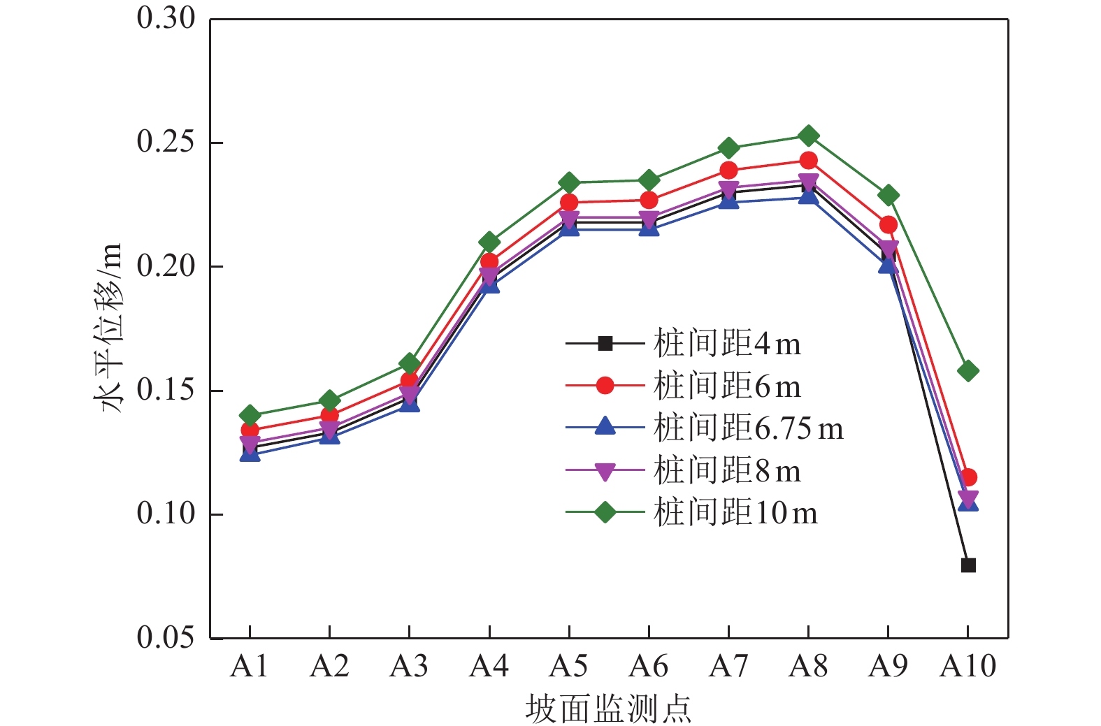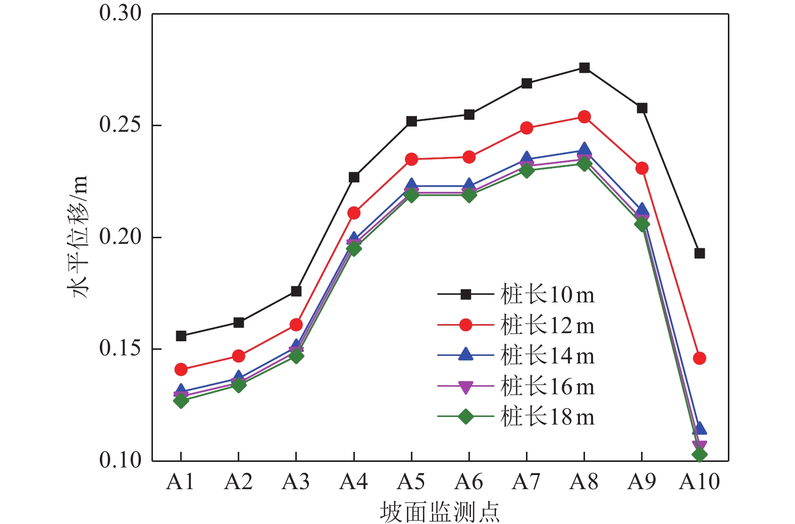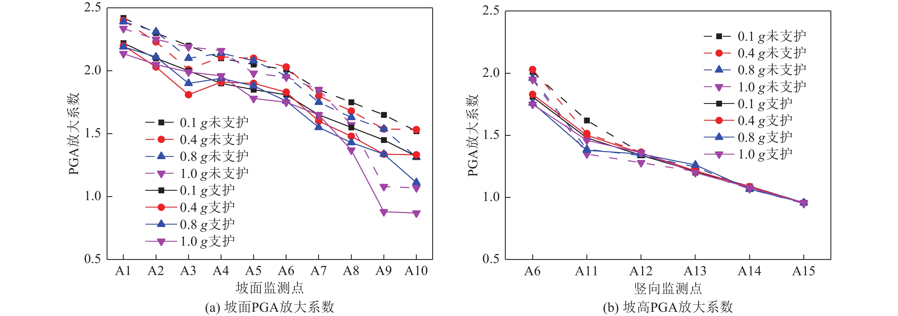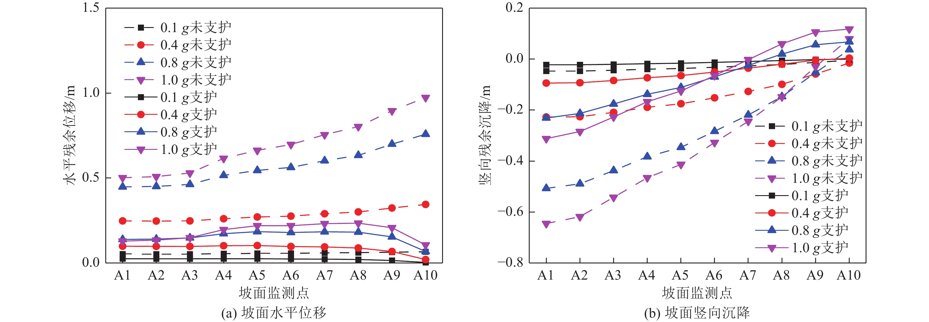 本文以北川王家岩南侧沈家包抗滑桩加固工程为背景,通过现场低应变测试、混凝土强度测试、FLAC 3D数值模拟及拟静力理论计算,系统研究了强震作用下抗滑桩加固边坡的动力响应规律。结果表明,随输入地震动强度增大,PGA放大系数呈非线性衰减特征,抗滑桩可以显著抑制边坡动力放大效应,其阻滑能力随地震动峰值增强而提升,地震作用下桩顶位移9.78 cm满足规范容许限值;抗滑桩内力分布特征显示,桩身剪力与弯矩峰值位于滑面附近;参数敏感性分析表明,桩长16 m、间距6.75 m为最优抗震设计参数;拟静力法计算得出桩身峰值剪力与峰值弯矩较数值模拟分别偏小2.93%和5.87%,建议抗震设计安全系数取1.2以上;研究揭示了抗滑桩在强震作用下的动力响应机理,为高烈度区边坡抗震设计提供了理论与技术支撑。